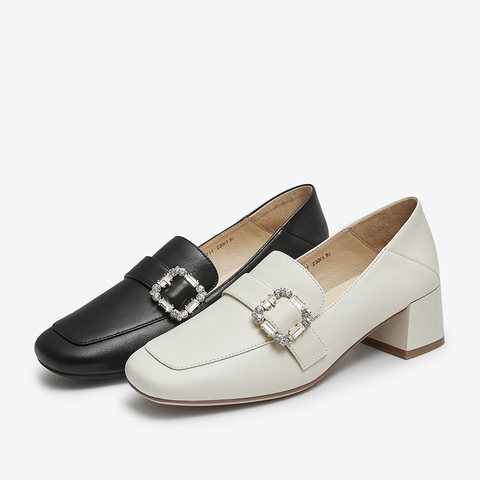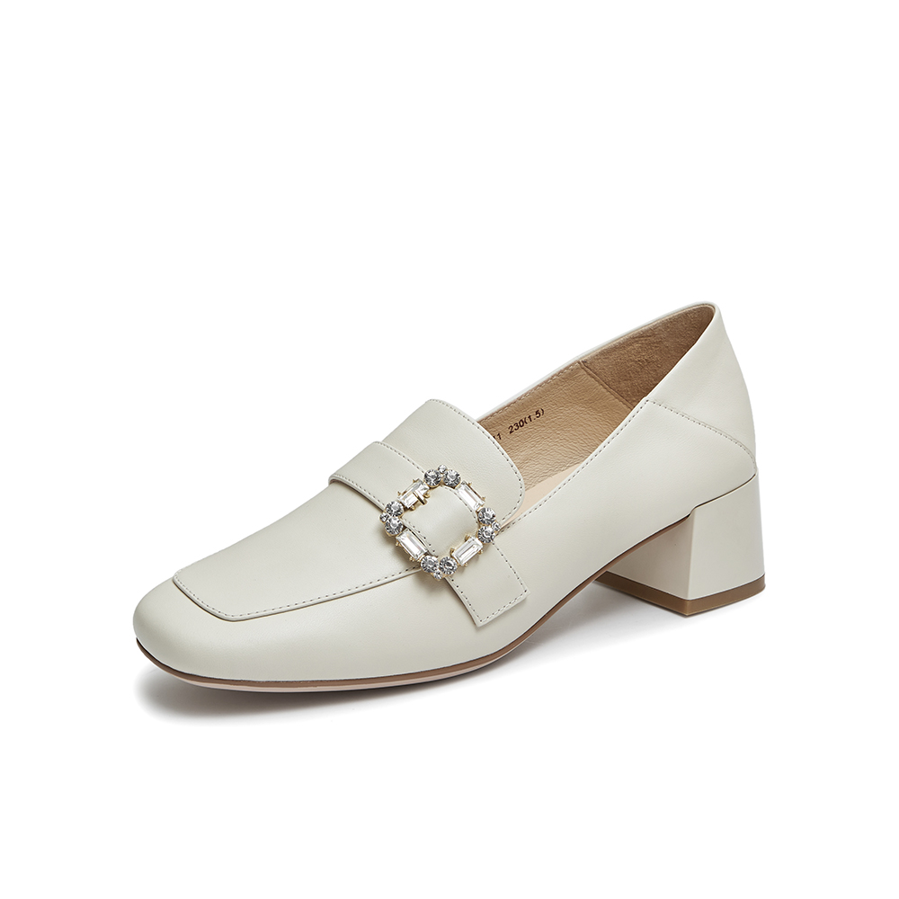 百思图2022秋季新款商场同款时尚方扣水钻乐福鞋女单鞋KC711CA2