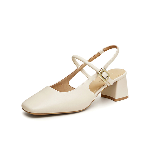 百思图2024夏季新款商场同款简约通勤粗跟方头女凉鞋RJF48BH4