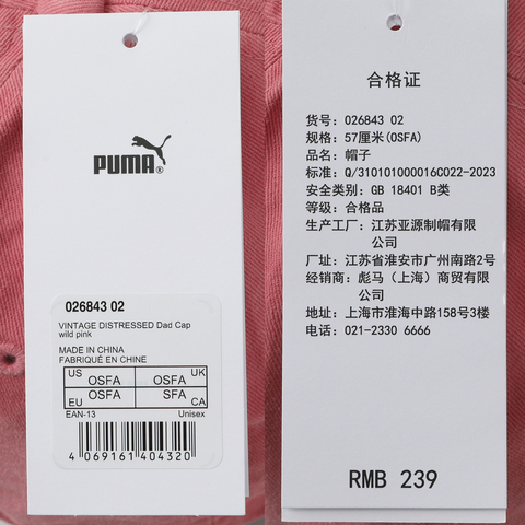 puma彪马2026中性中性-VINTAGE HEAVY DISTRESSED-狂野粉弯沿帽02684302