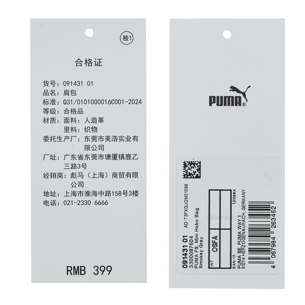 puma彪马2025女子女子-PUMA FS. QU Mini Hobo Bag-烟灰色拎包挽包09143101