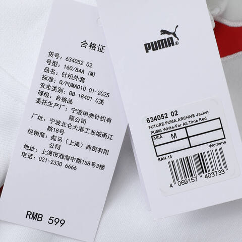 puma彪马2025女子女子-FUTURE.PUMA.ARCHIVE T7 Slim Cropped Track Jacket-彪马白-红色针织无帽外套63405202