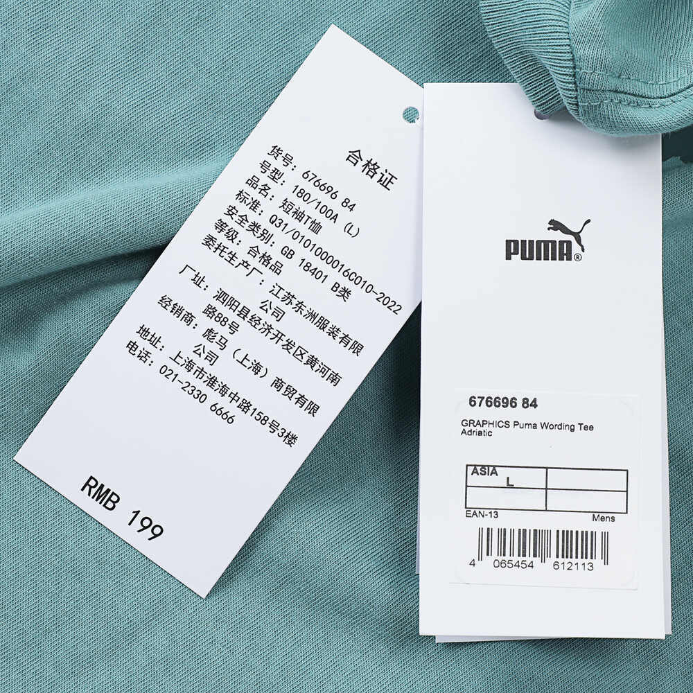 puma彪马2025男子男子-GRAPHICS Puma Wording Tee-灰蓝色针织无领短T67669684