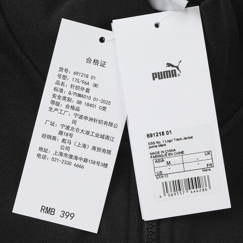 puma彪马2026男子男子-ESS No. 1 Logo Track Jack-黑色针织无帽外套69121801