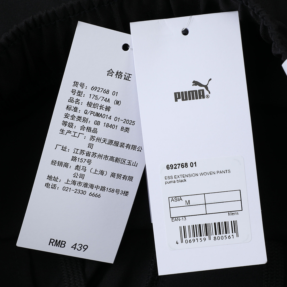 puma彪马2025男子男子-ESS EXTENSION WOVEN PANTS-黑色梭织长裤69276801