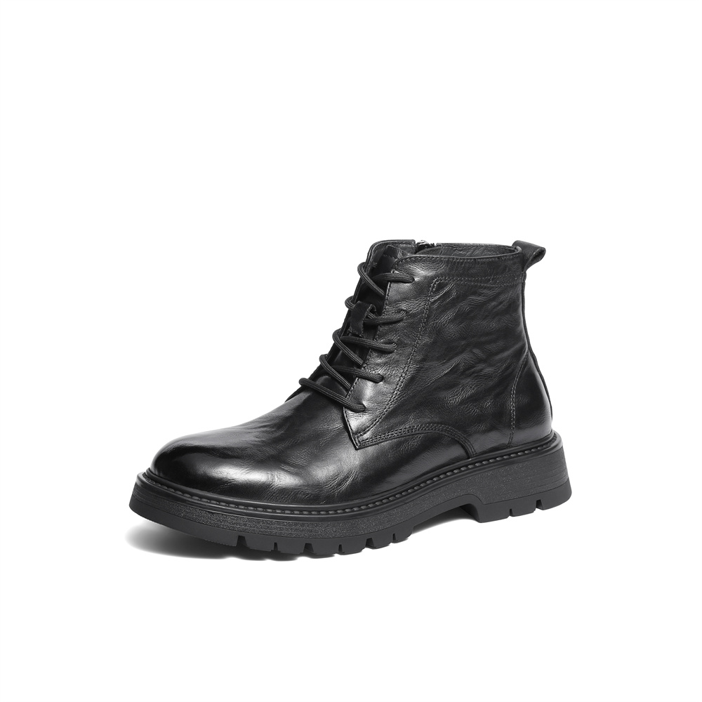 森达马丁靴男2025冬新商场同款抓纹厚底休闲短皮靴2AM01DD5