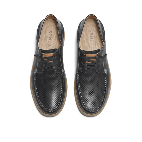 森达简约休闲皮鞋男2024夏新商场同款打孔舒适平底单鞋42811BM4