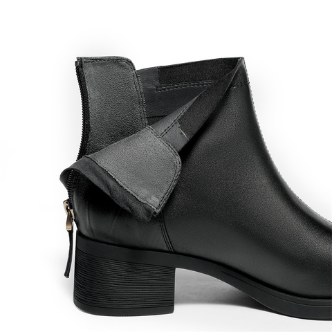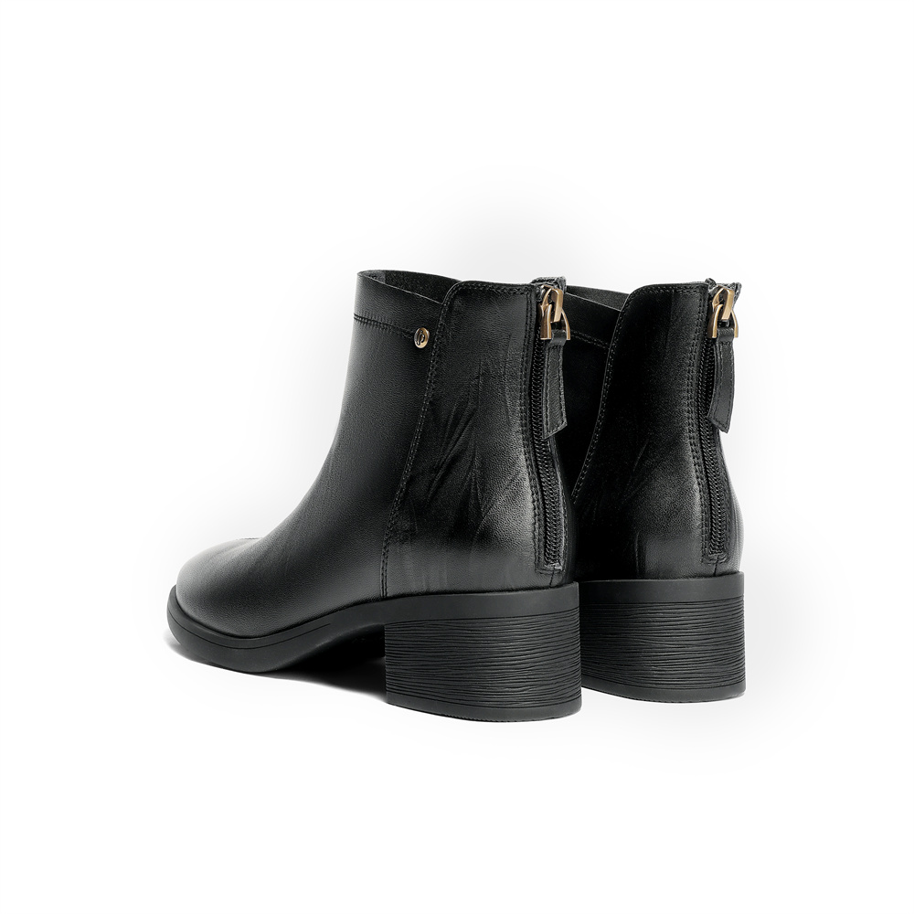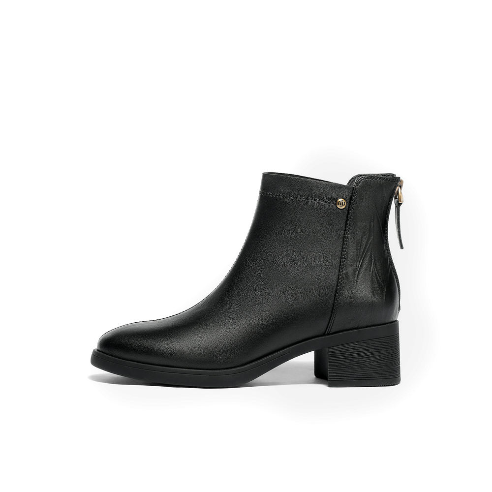 森达时装靴女款2025冬新商场同款气质显瘦粗跟短皮靴4FU42DD5