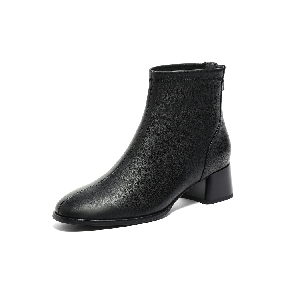 森达气质时装靴女2025冬新商场同款粗跟显瘦短靴4MH43DD5