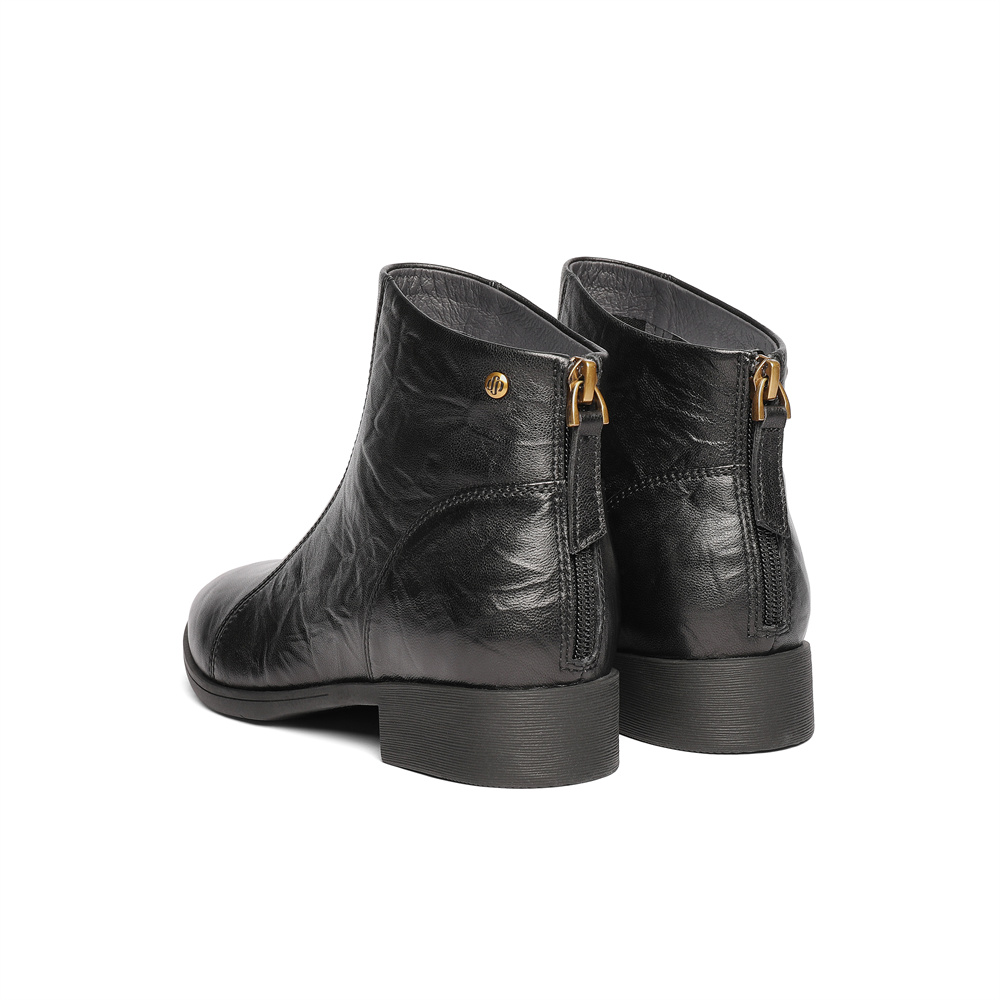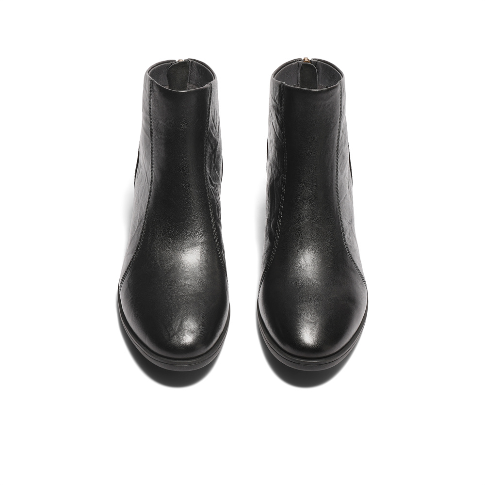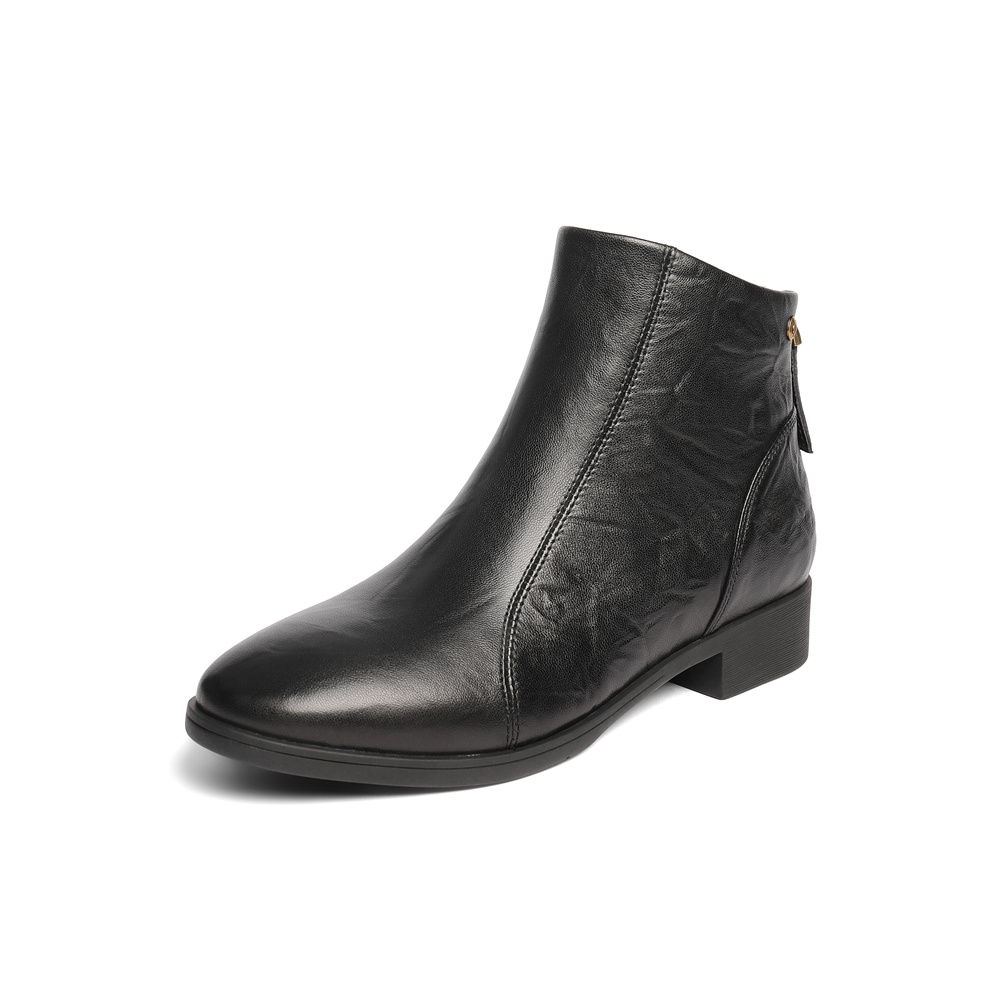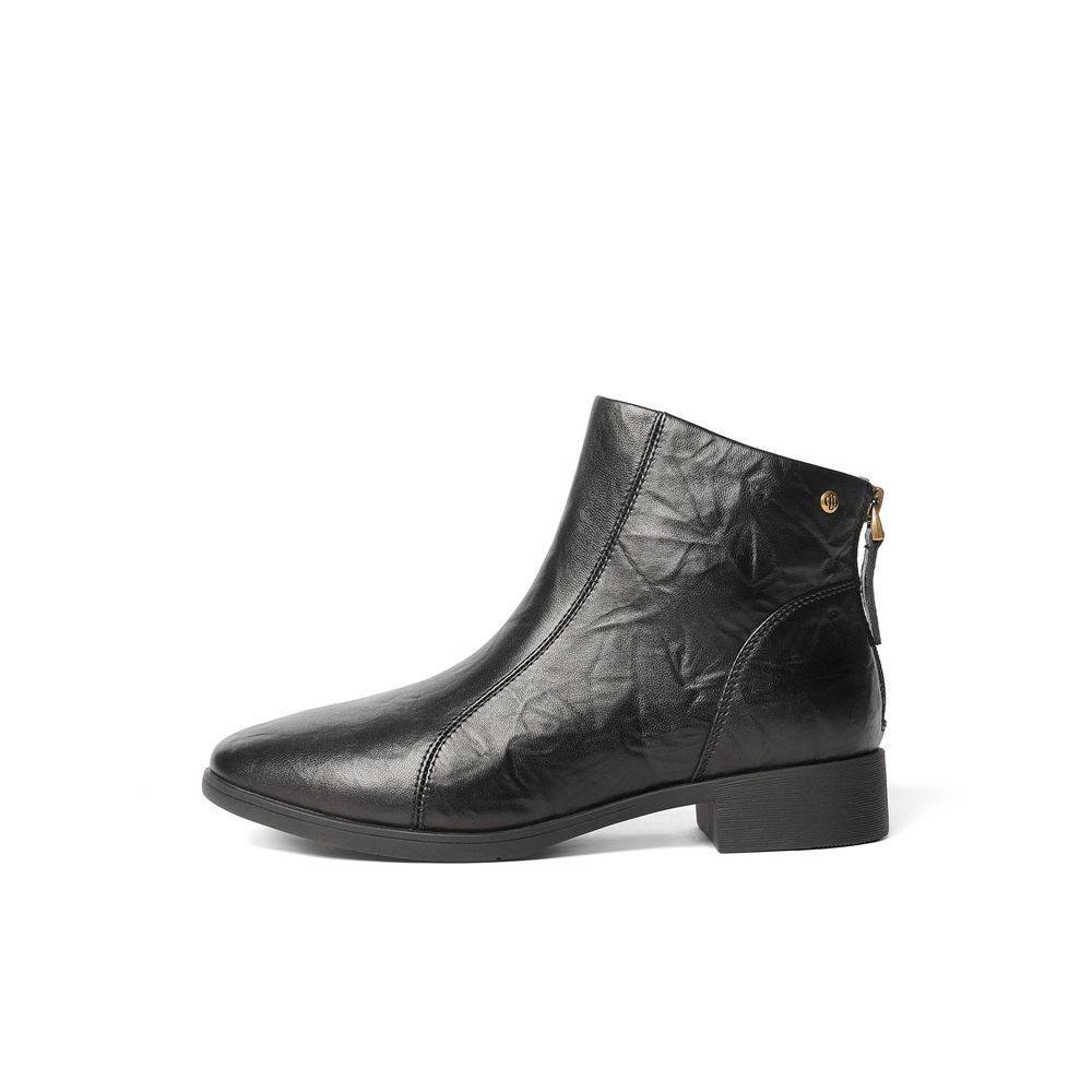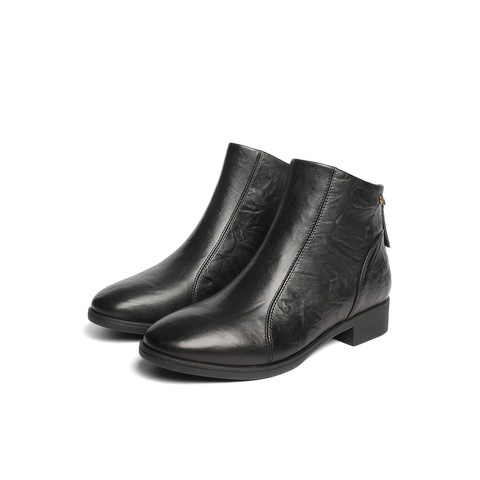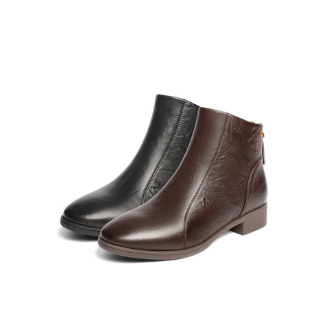 森达休闲靴女2025冬季新款商场同款抓纹皮短皮鞋4T649DD5