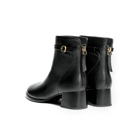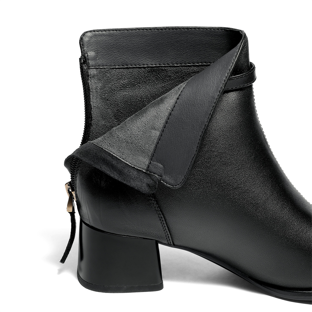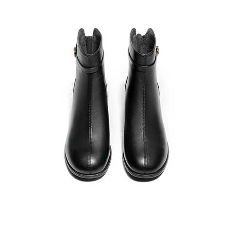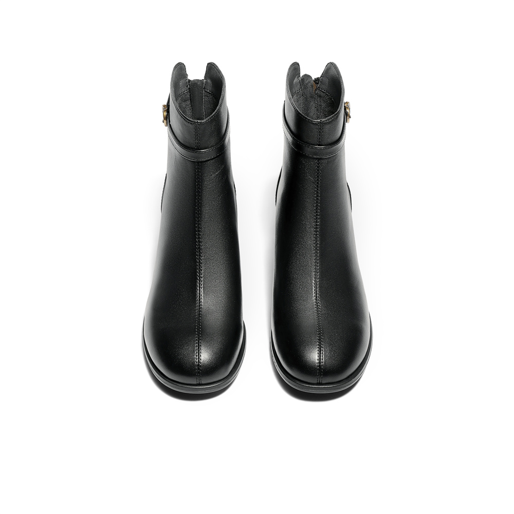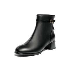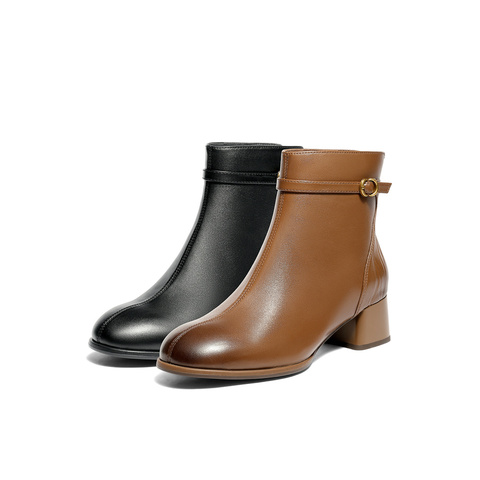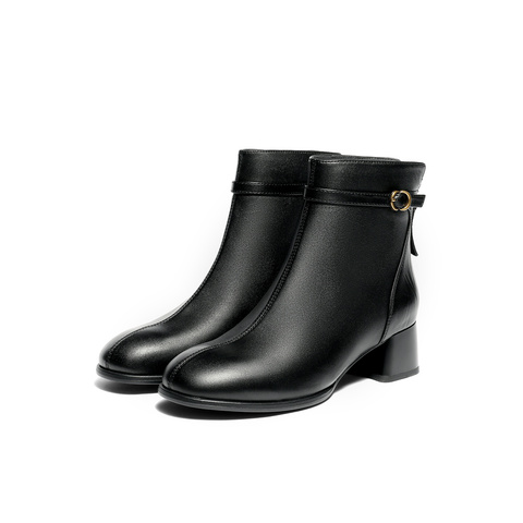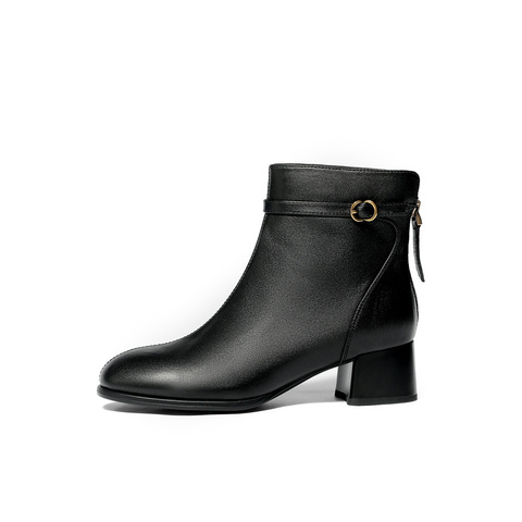 森达时装靴女2025冬新商场同款皮带扣粗跟短皮靴4TQ43DD5