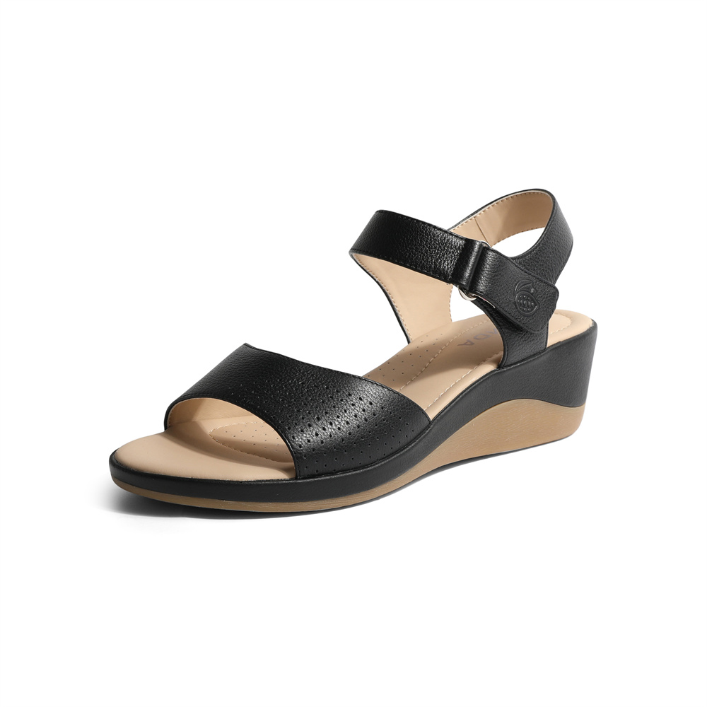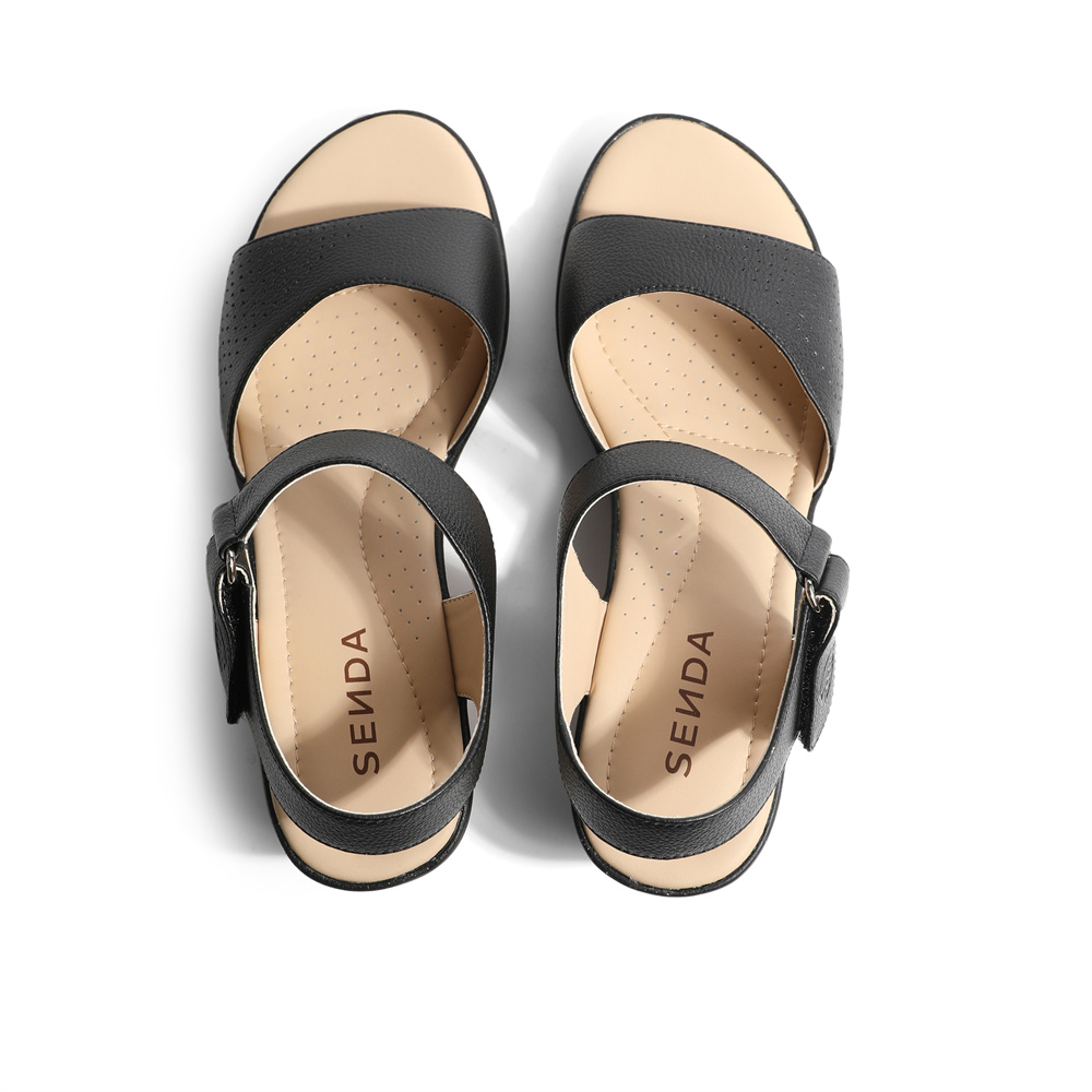 森达时尚皮凉鞋女2023夏季新款商场同款气质坡跟通勤休闲4VK30BL3