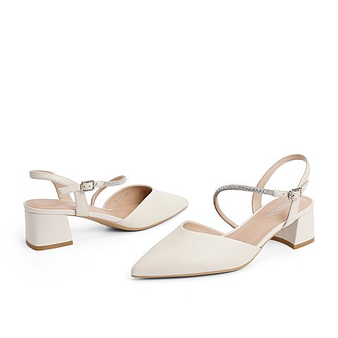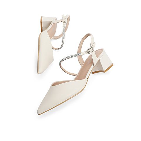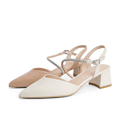 森达2021夏季新款商场同款通勤尖头粗跟休闲女凉鞋4WD11BH1