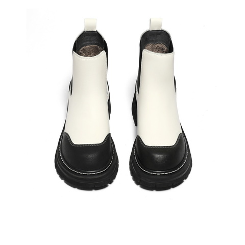 森达厚底切尔西靴女年冬商场同款套筒靴子加绒SYF01DD3