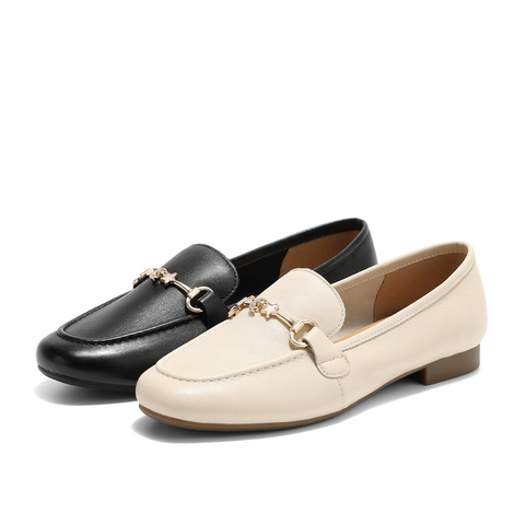 森达乐福鞋女款2025秋新马衔扣通勤舒适平跟单鞋WP026CA5