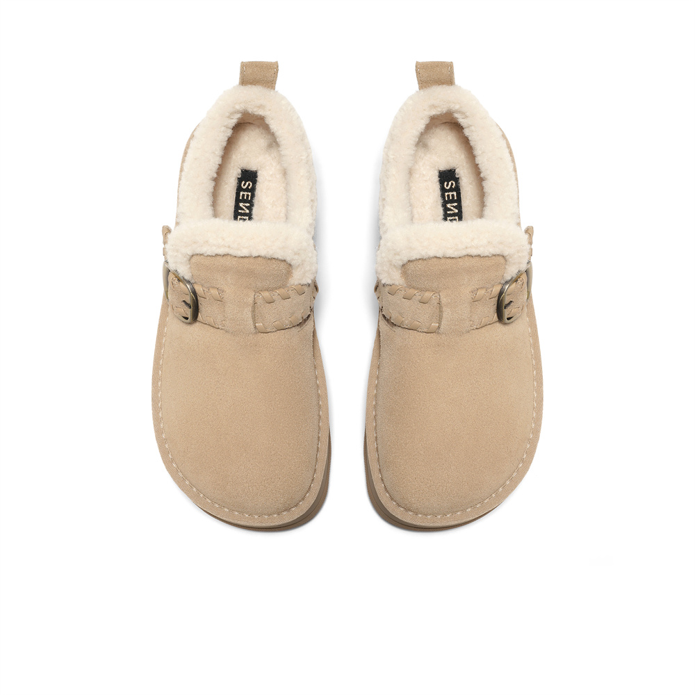 森达毛毛鞋女2025冬季新款舒适保暖厚底勃肯休闲鞋WP051DA5