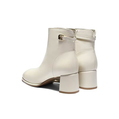 森达时装靴女2025冬季新款气质显瘦粗高跟短皮靴WP057DD5