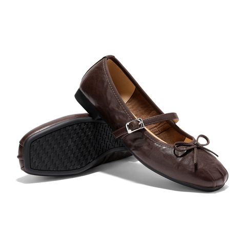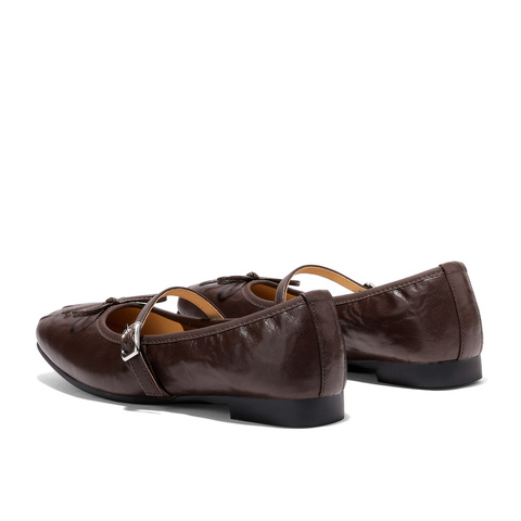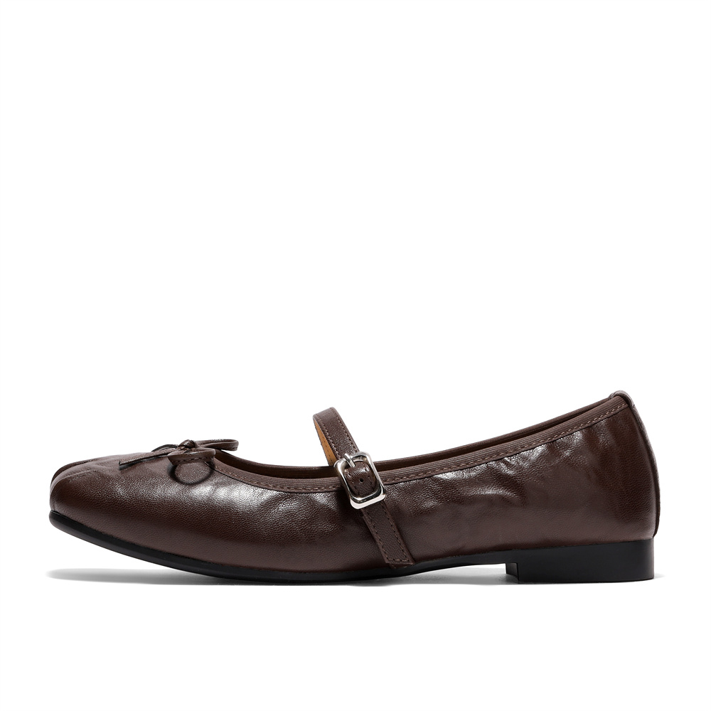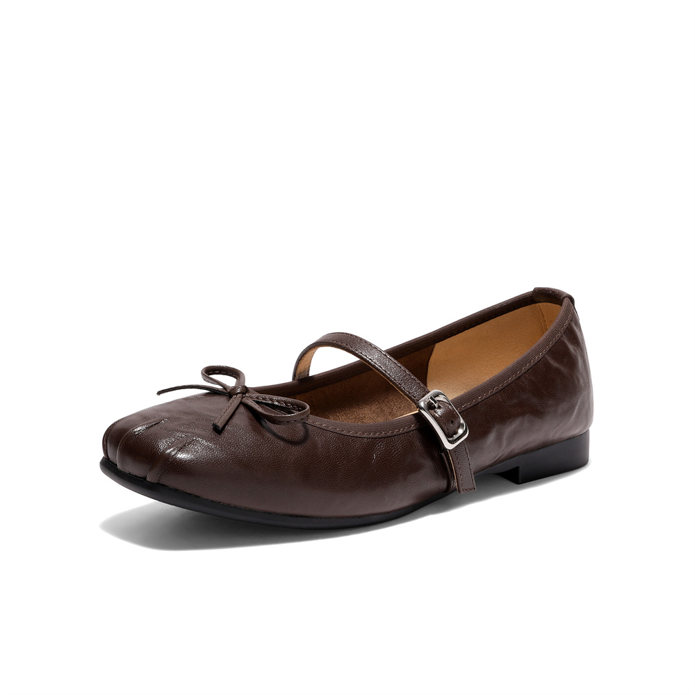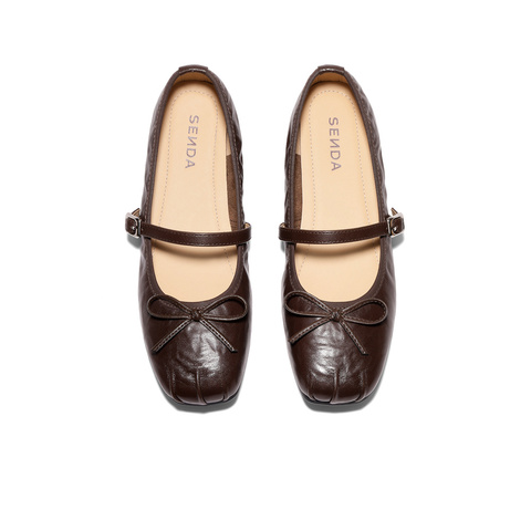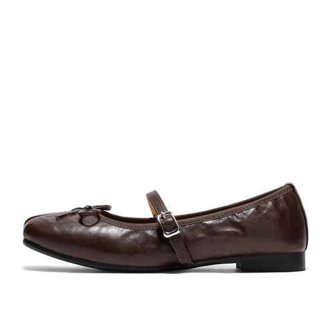森达玛丽珍女2026春季新款抓纹软面平底浅口单鞋WP065AQ6