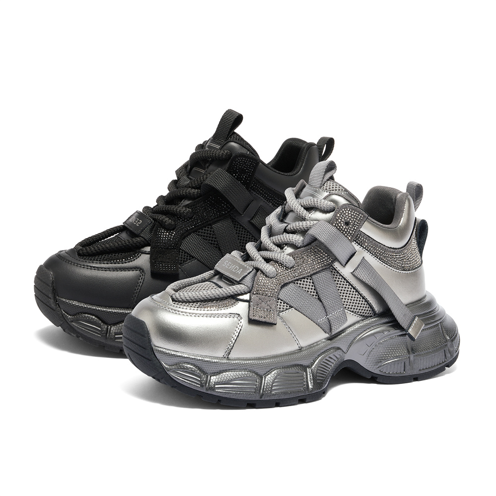 森达老爹鞋女款2024冬季新款户外运动风显高厚底休闲鞋XJH01DM4