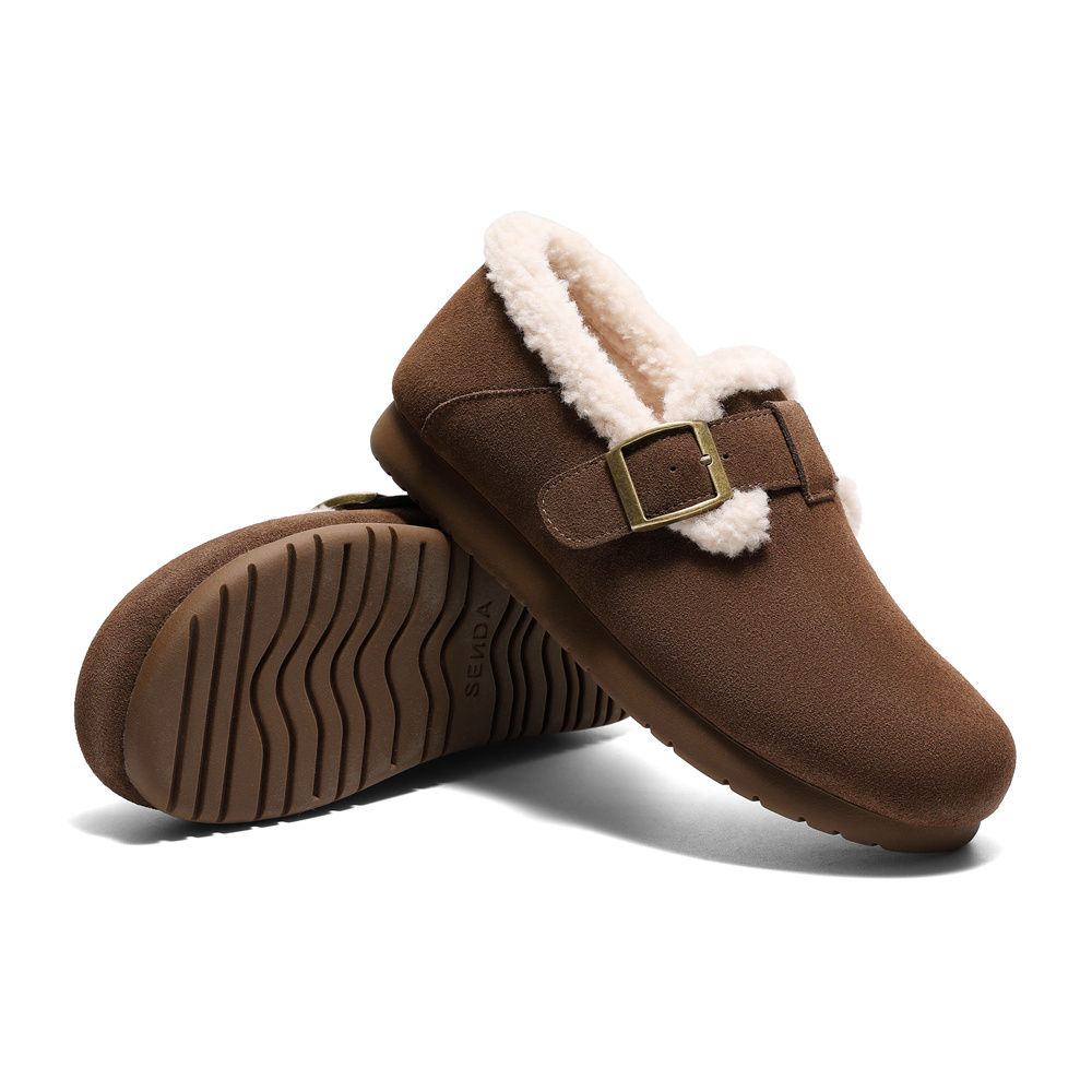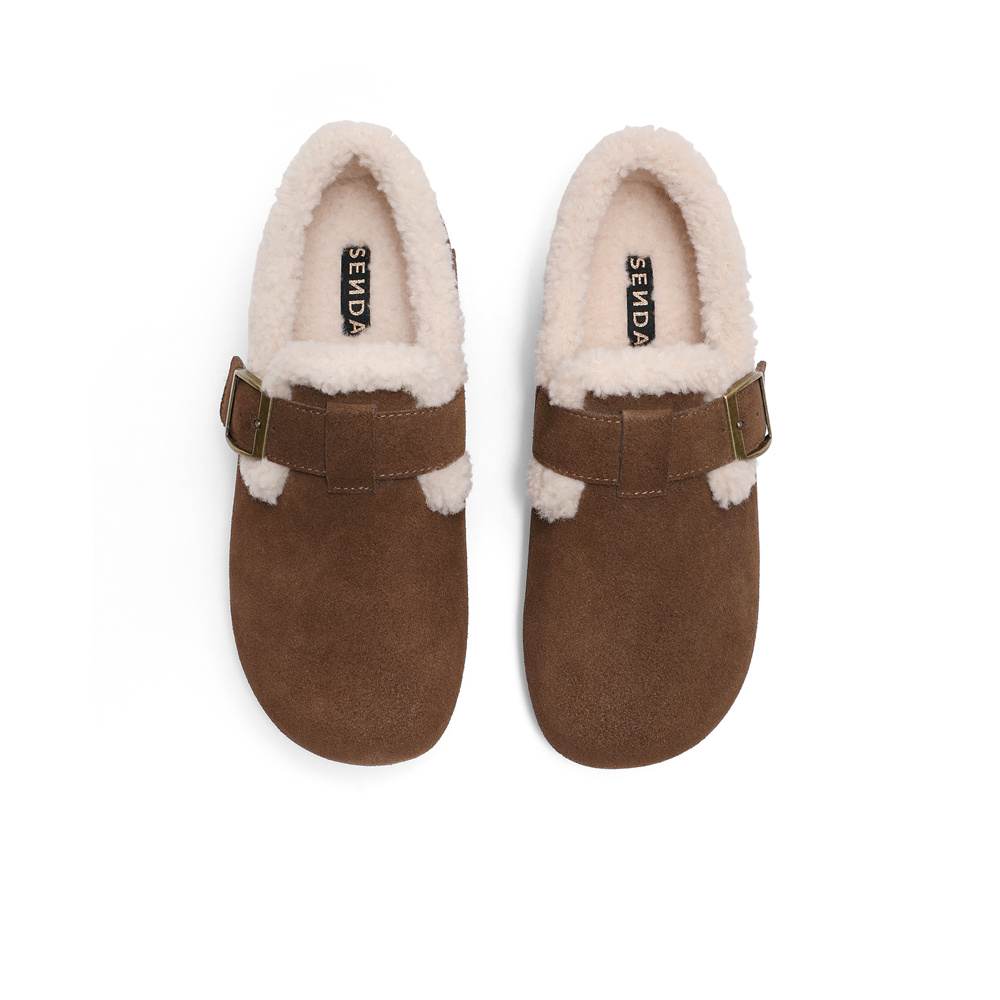 森达毛毛鞋女款2025春新商场同款保暖绒毛休闲勃肯鞋XJW01AM5