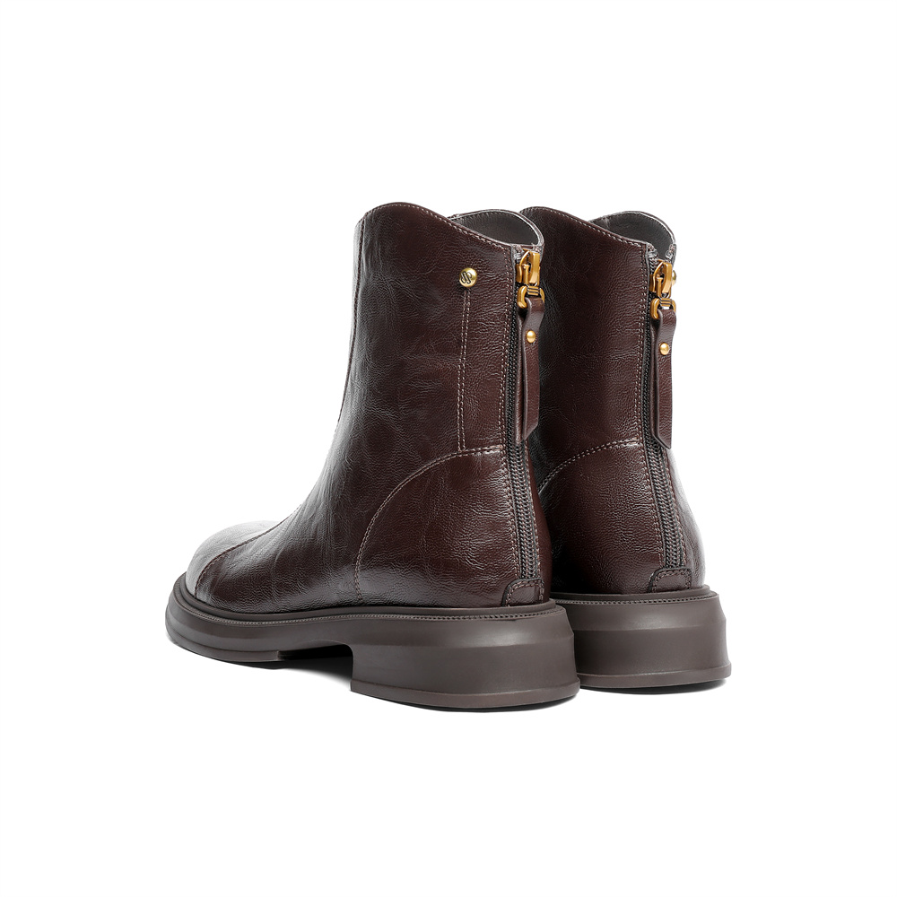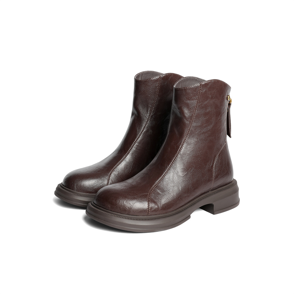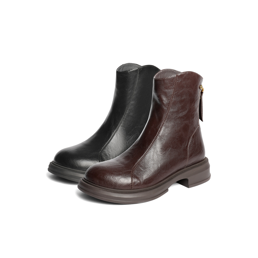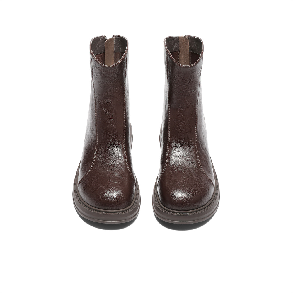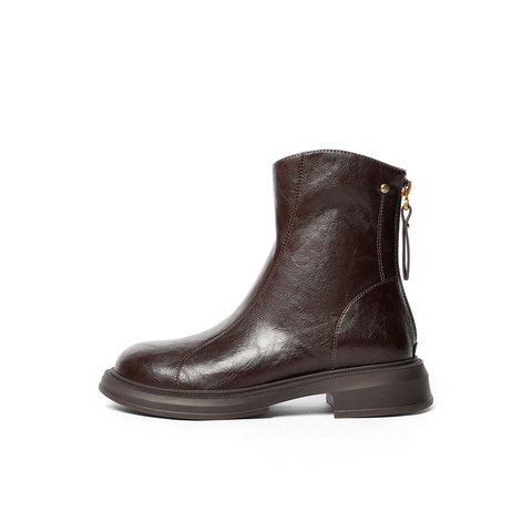 森达弹力靴女2025冬新商场同款复古潮流休闲中筒靴XRP01DZ5