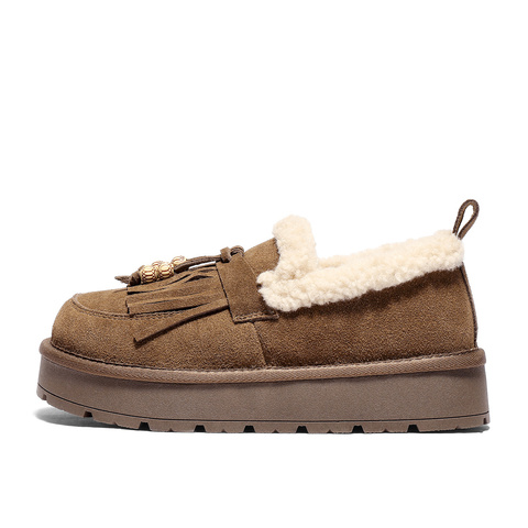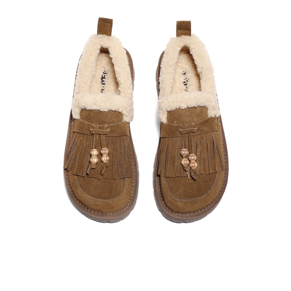 森达毛毛鞋女2025冬季新款商场同款一脚蹬厚底休闲鞋XSJ01DM5