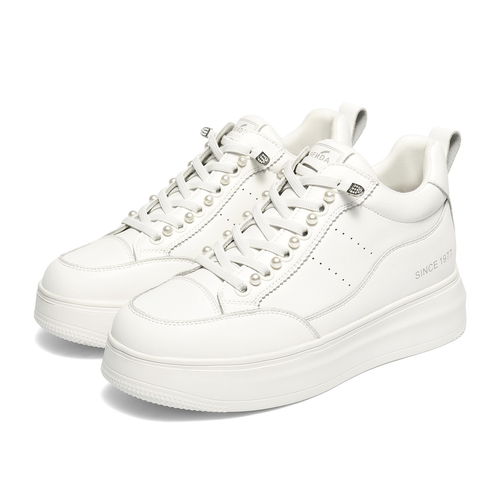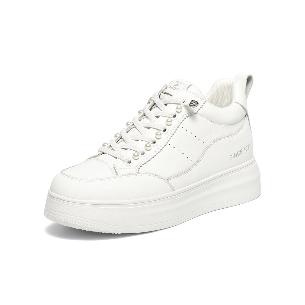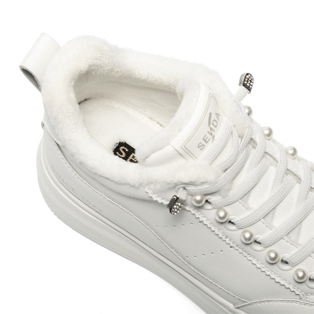 森达高帮鞋女2025冬新商场同款简约厚底休闲小白鞋XTR01DD5