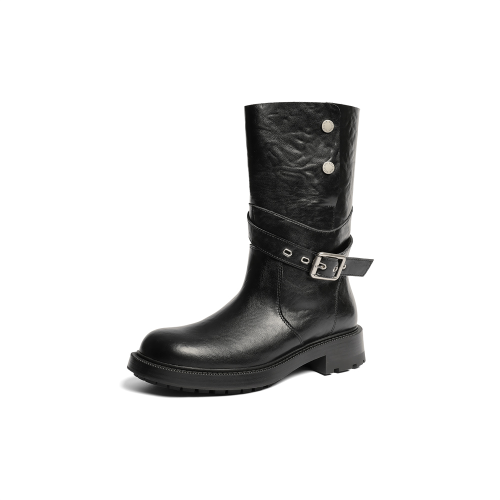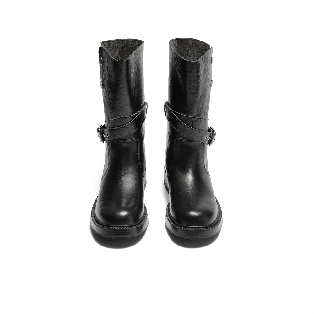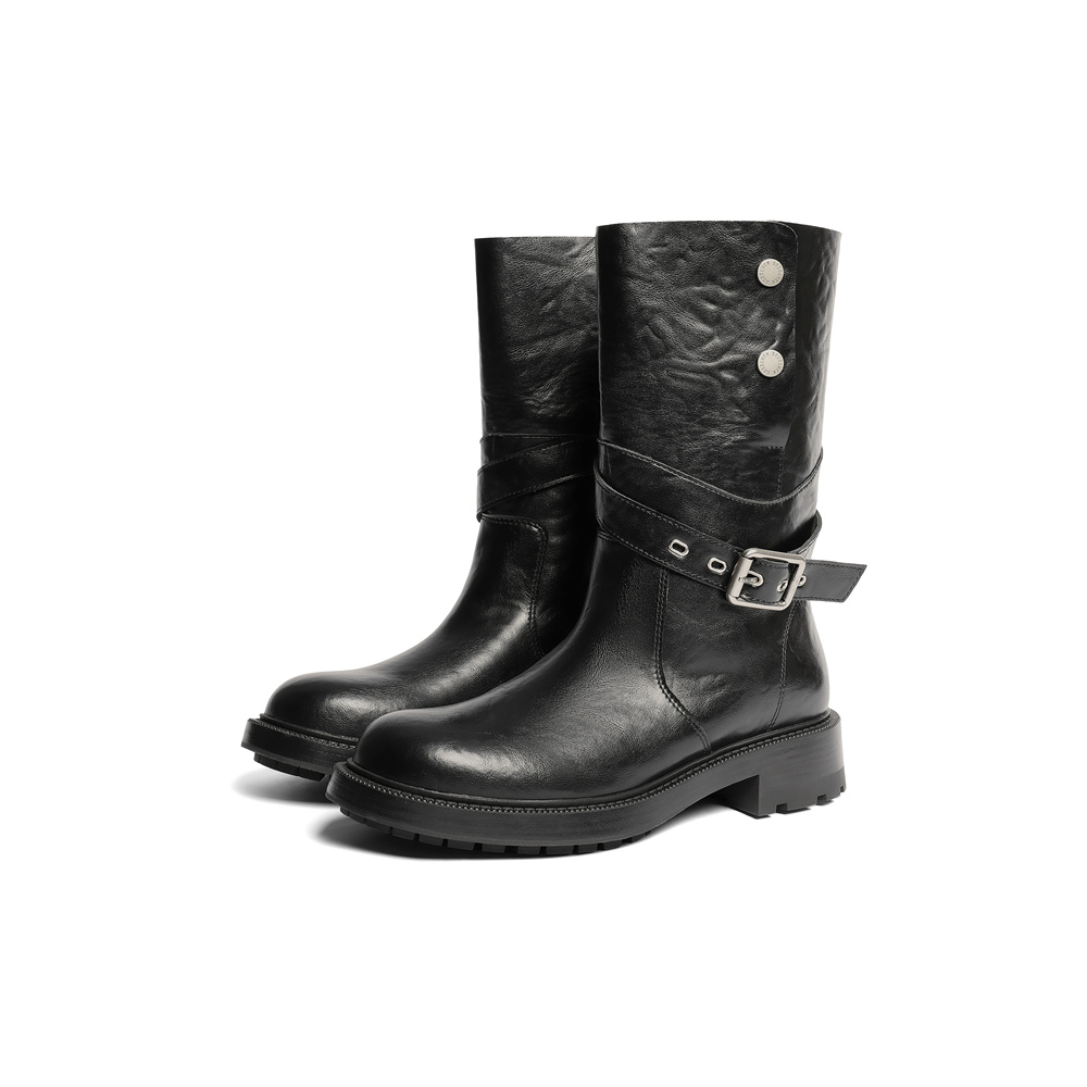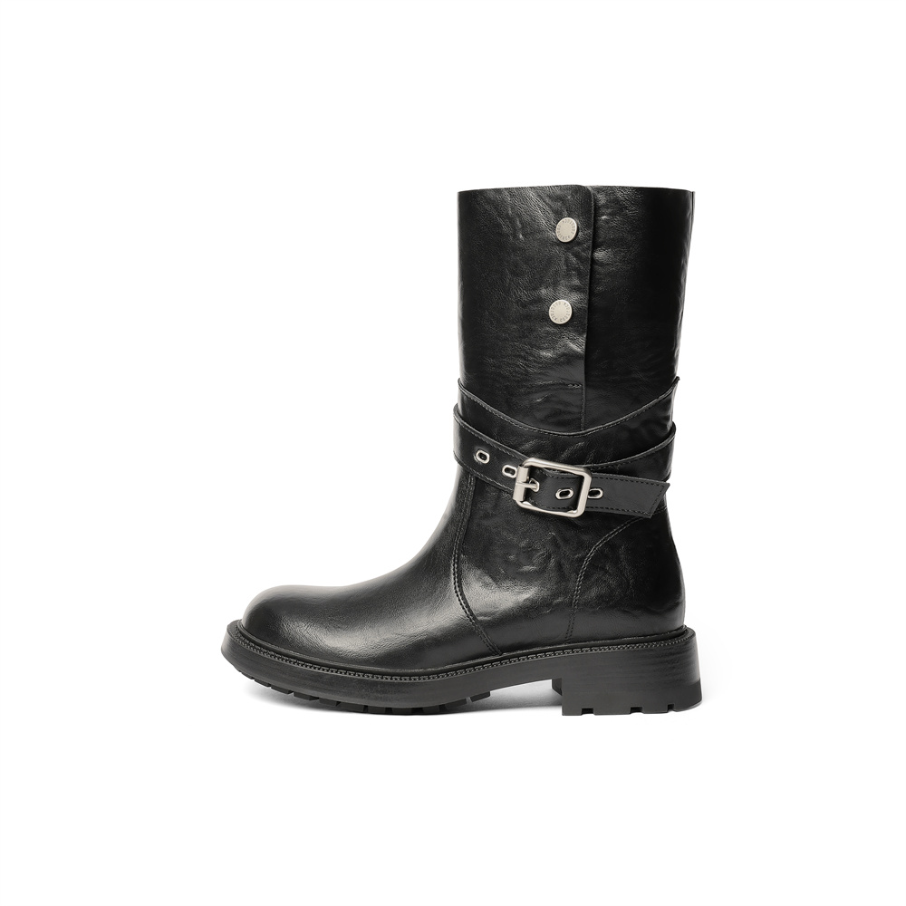 森达时装靴女2025冬新商场同款皮带扣潮流休闲中靴XVL01DG5