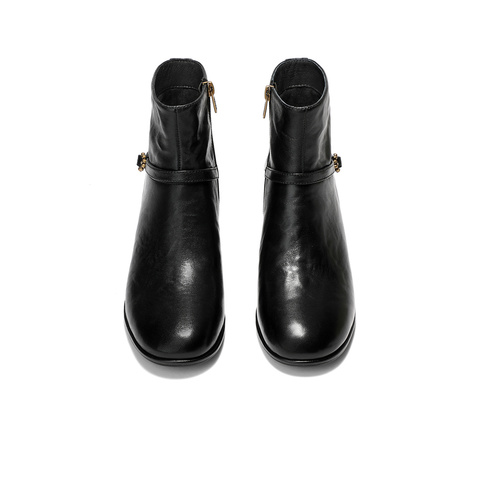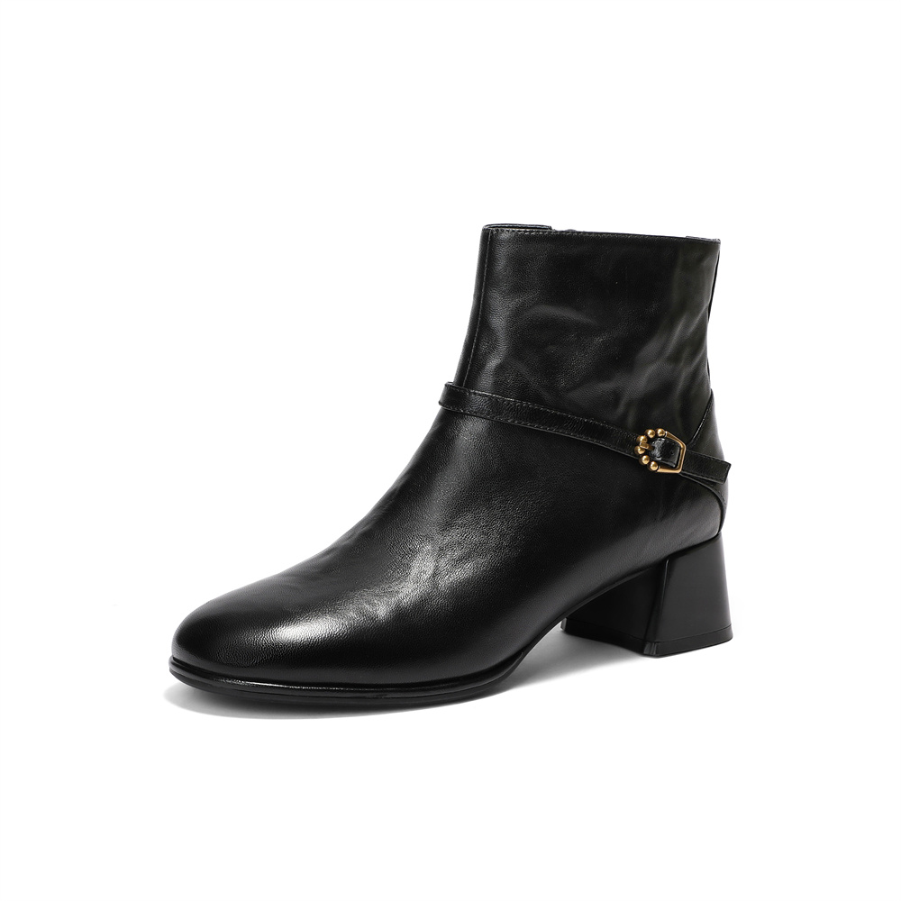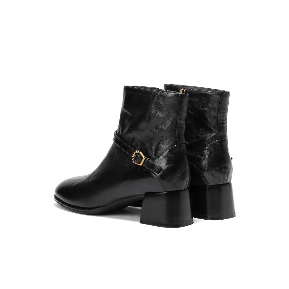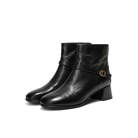 森达时装靴女2025冬新商场同款抓纹时尚短皮靴XVS01DD5