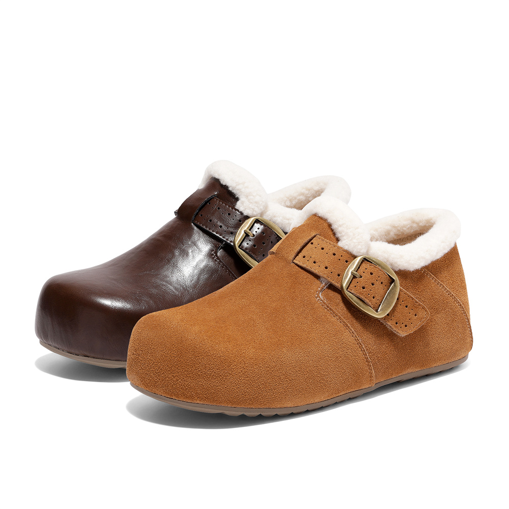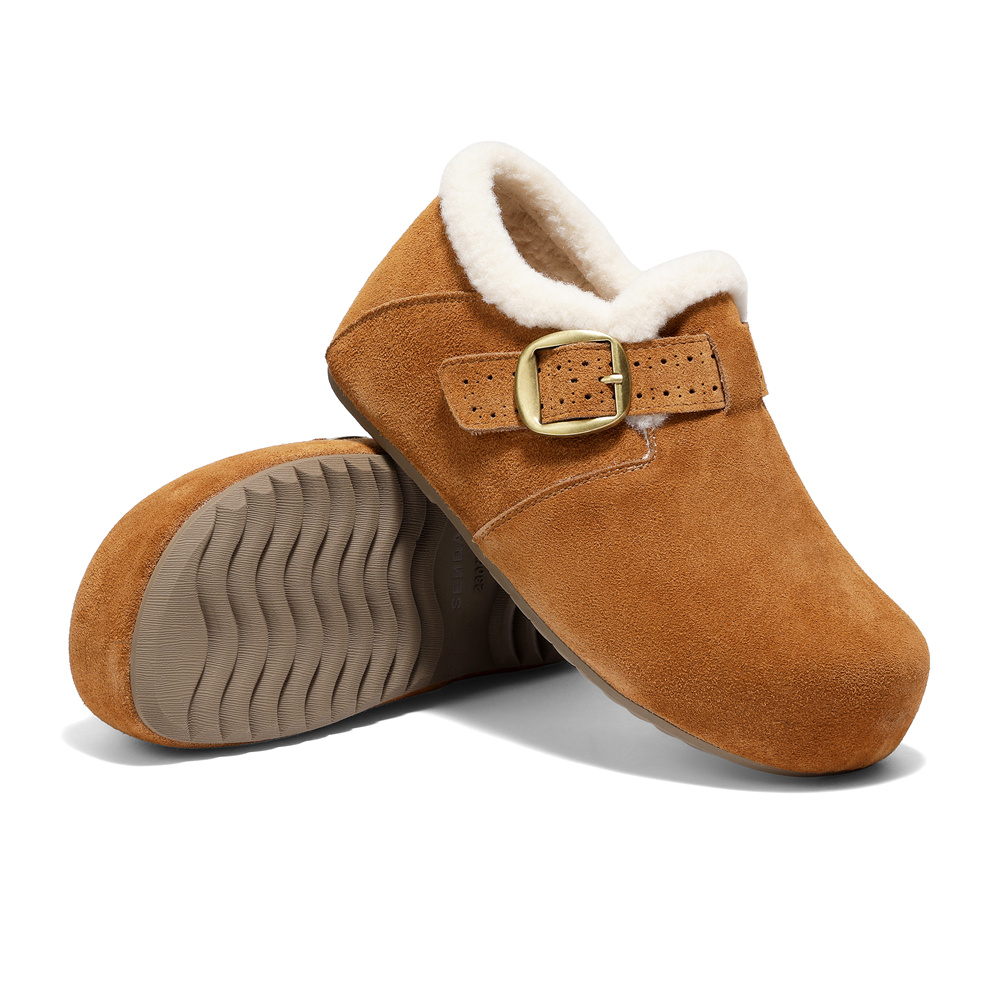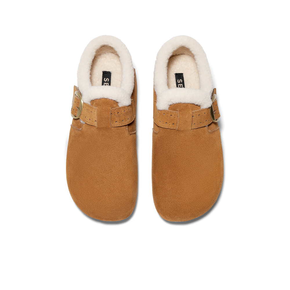 森达毛毛鞋女2026春新毛绒保暖一脚蹬内增高勃肯鞋XXR01AM6