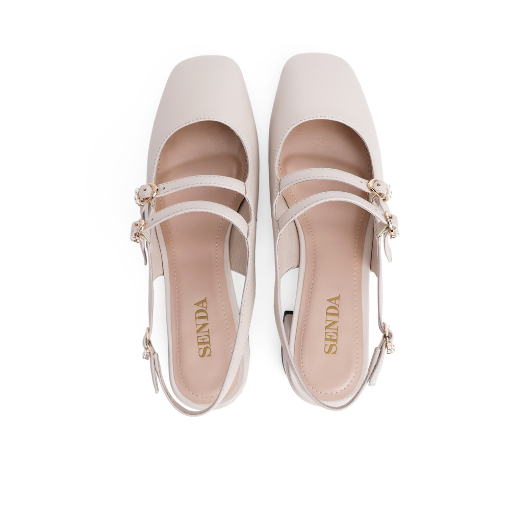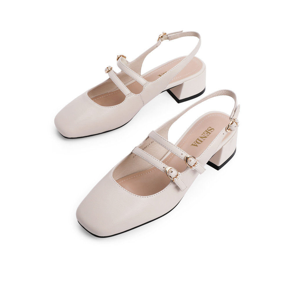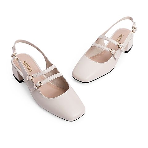 森达2021夏季新款玛丽珍珍珠休闲粗跟女后空凉鞋Z1204BH1