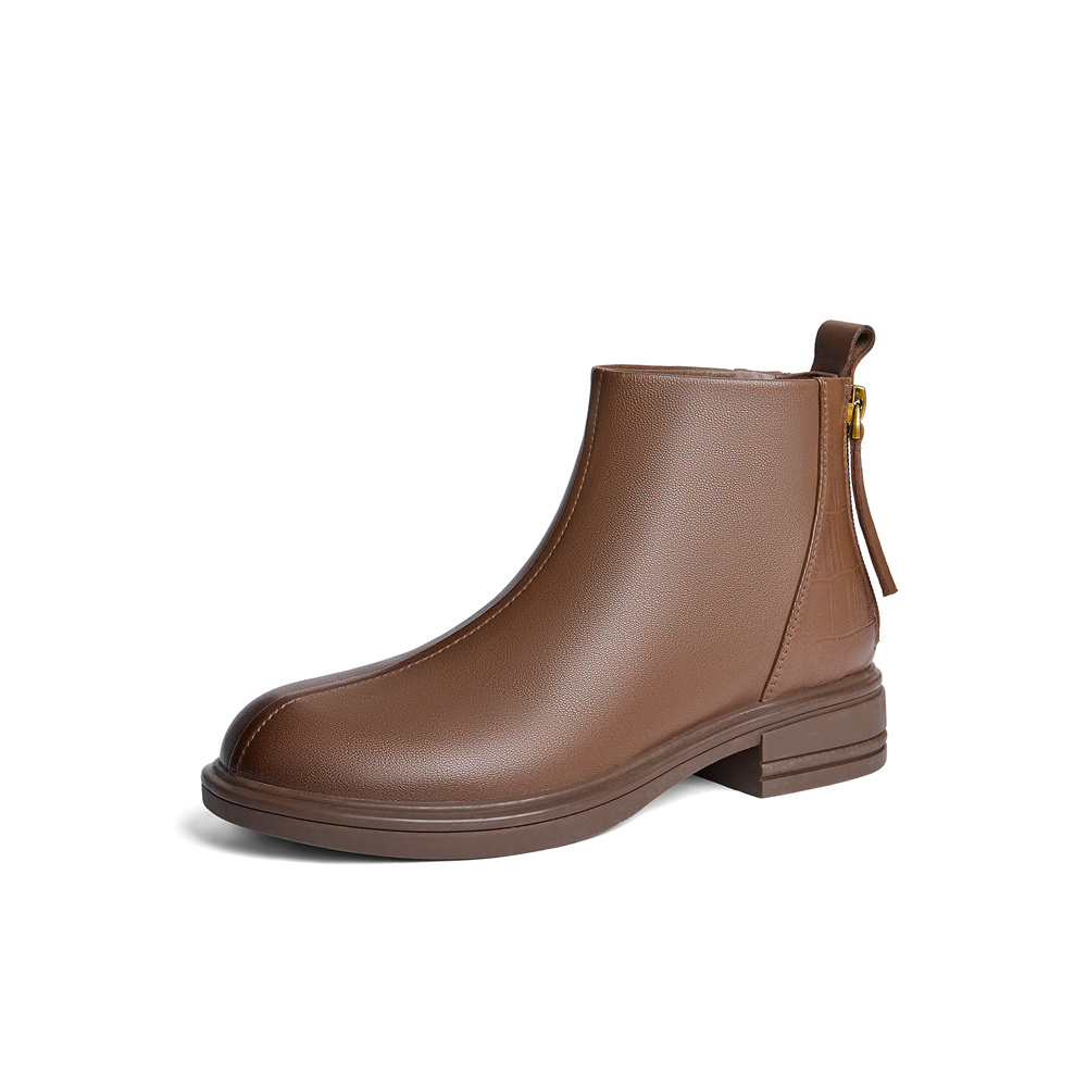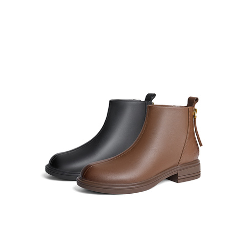 森达弹力靴女款2024冬季新款简约软面舒适休闲短靴ZTE02DD4