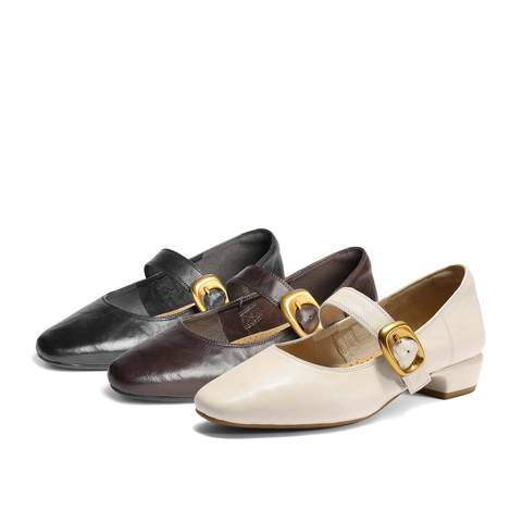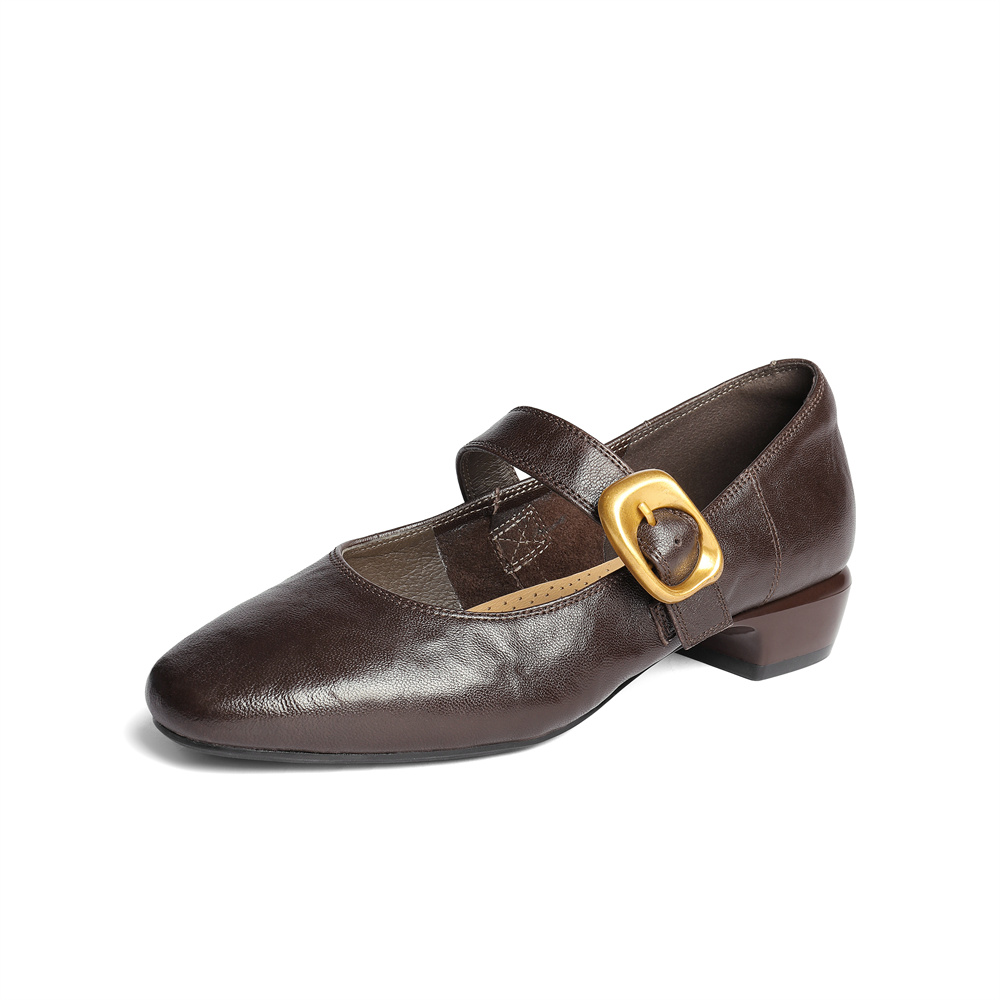 森达玛丽珍女款2025秋季新款气质通勤粗跟浅口单鞋ZTH10CQ5