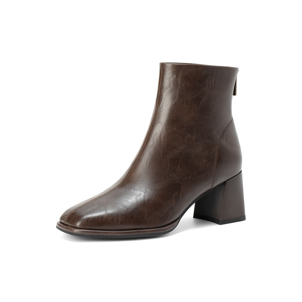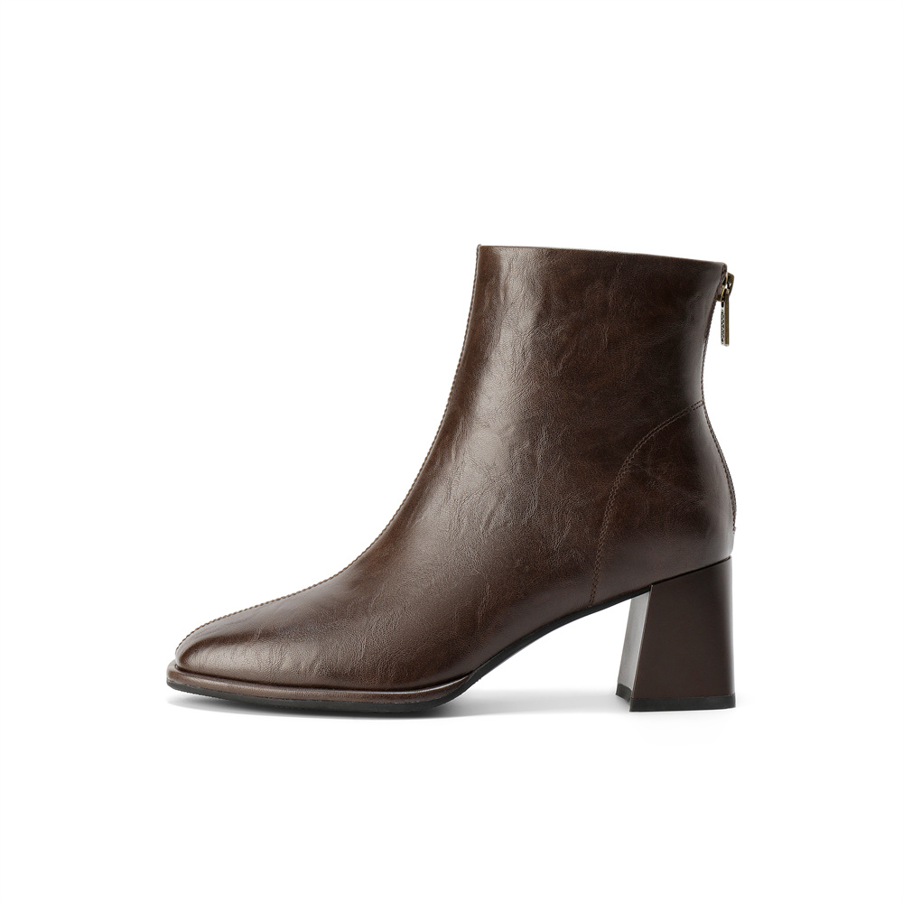 森达弹力靴女2025冬季新款气质方头粗高跟短靴ZTI16DZ5