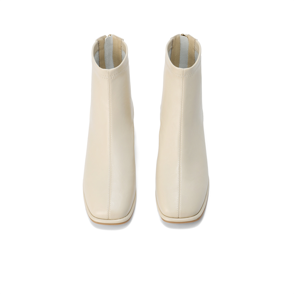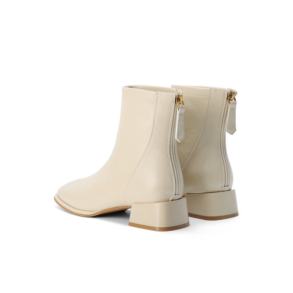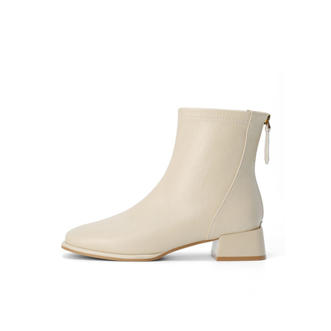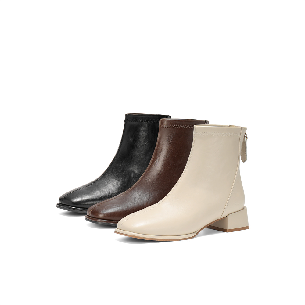 森达弹力靴女2025冬季新款气质方头粗跟休闲短靴ZTI17DD5