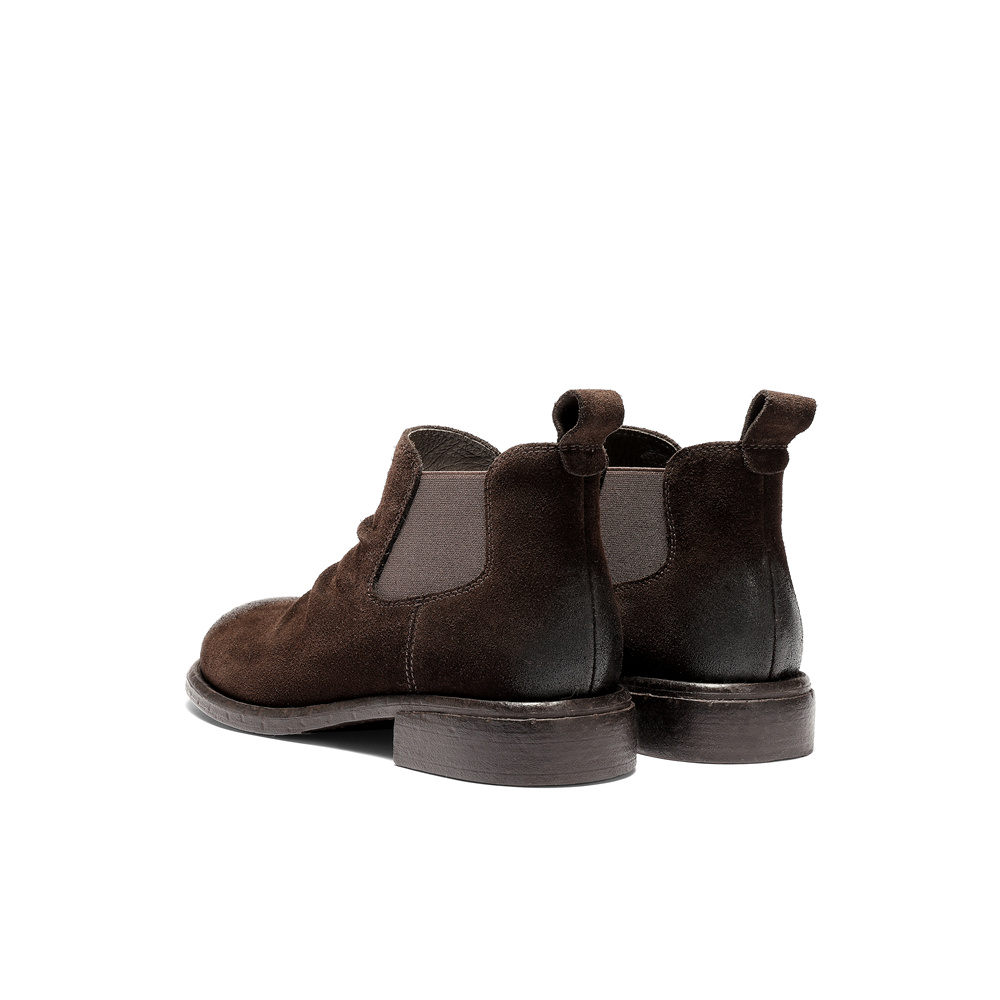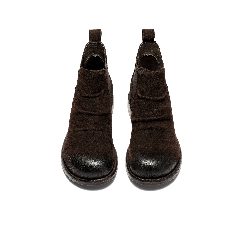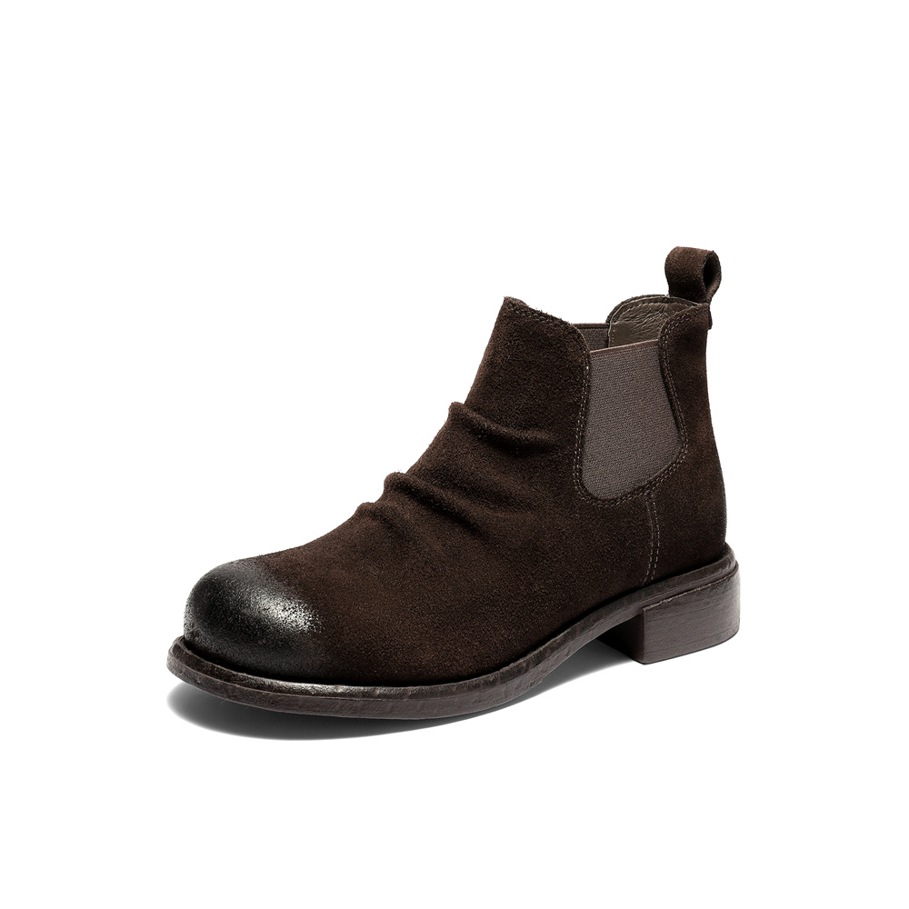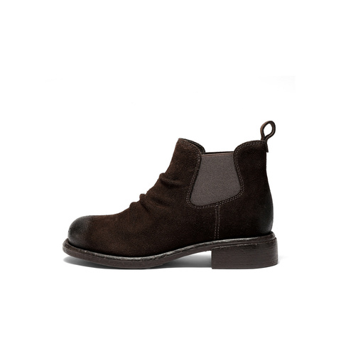 森达切尔西靴女2025冬新潮流褶皱休闲粗跟短靴ZTI39DD5
