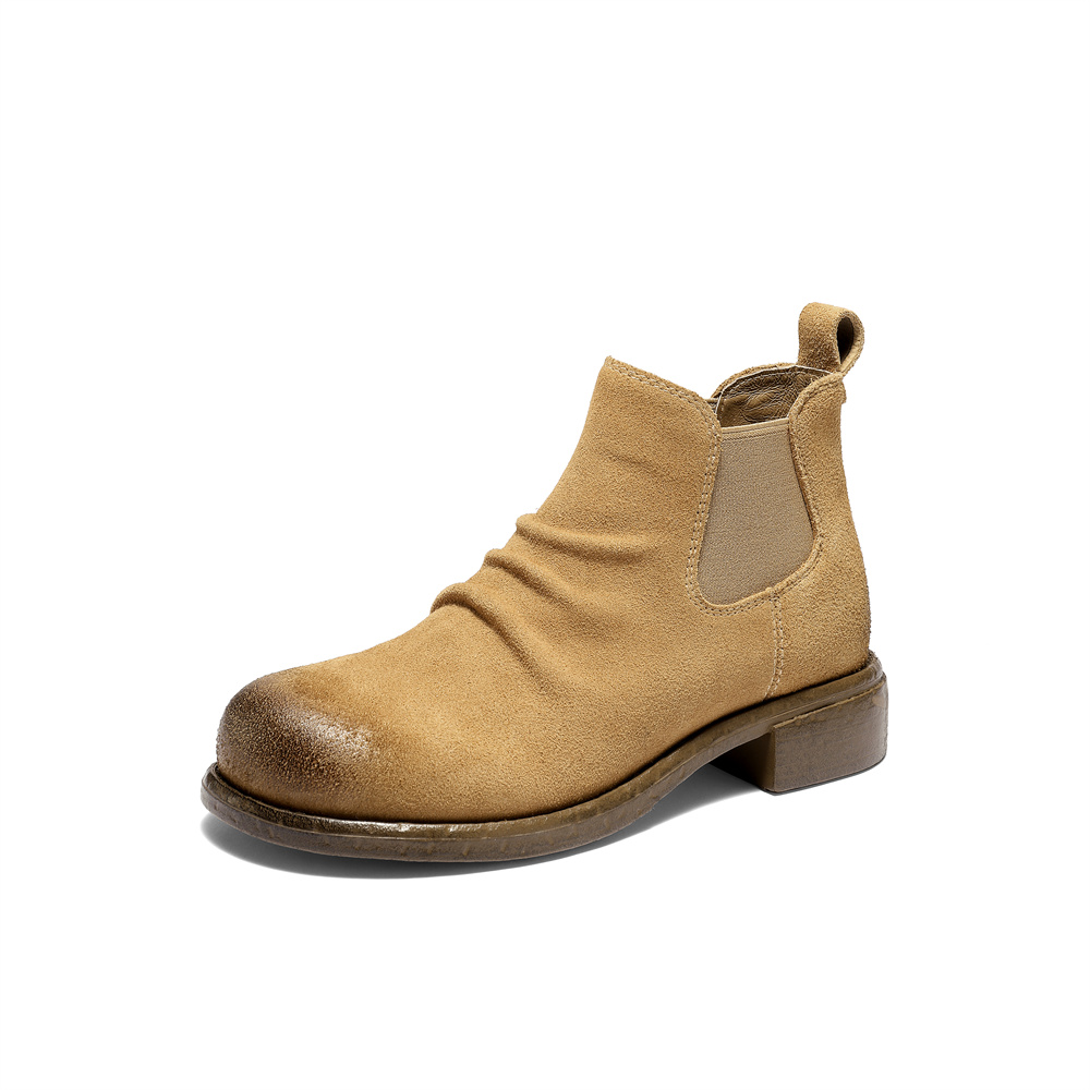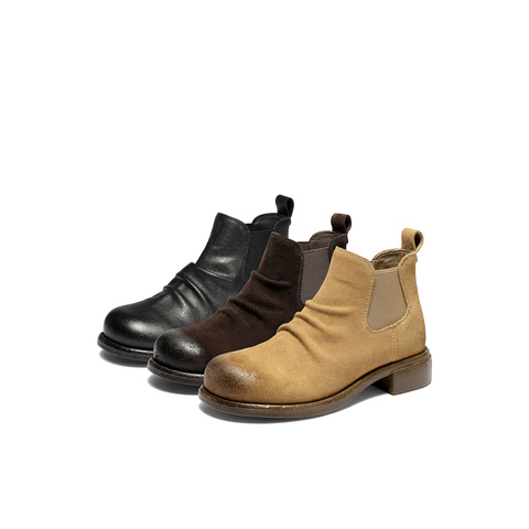 森达切尔西靴女2025冬新潮流褶皱休闲粗跟短靴ZTI39DD5