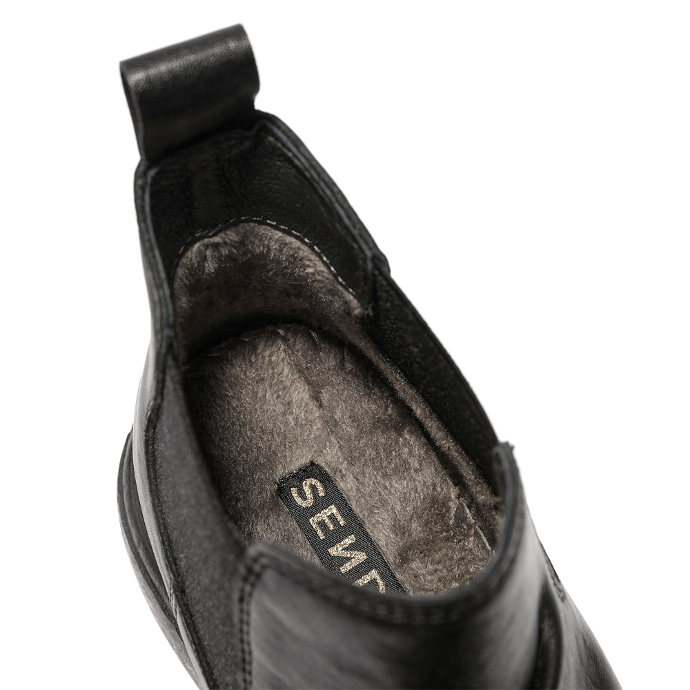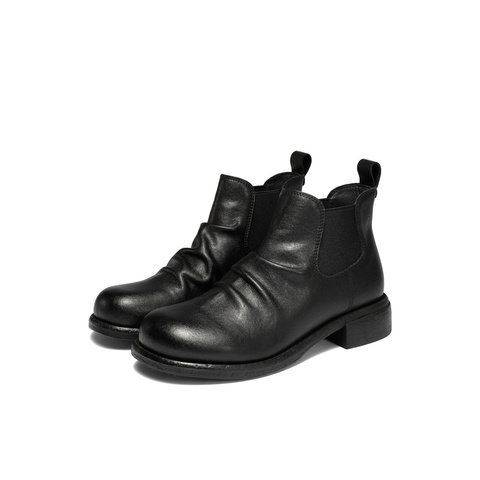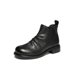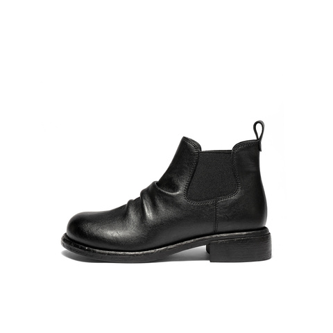 森达切尔西靴女2025冬新潮流褶皱休闲粗跟短靴ZTI39DD5