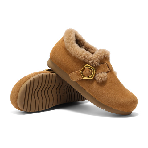 森达勃肯鞋女2026春季新款毛绒保暖舒适休闲毛毛鞋ZTK14AM6