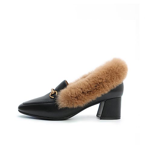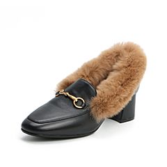 Senda/森达2020春新款欧美通勤绒毛休闲女粗跟单鞋ZWXY5AM0