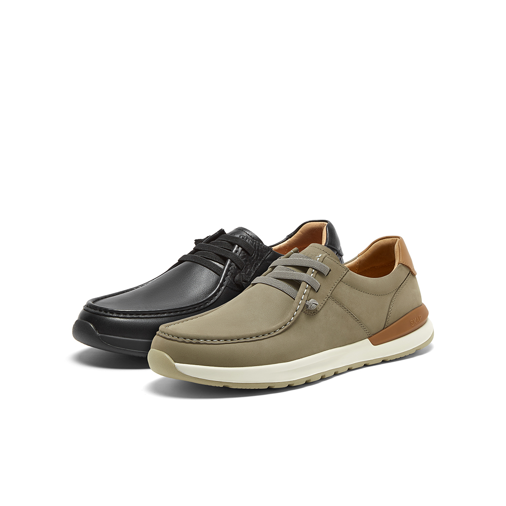 SKAP圣伽步2024秋季新款商场同款免系带舒适牛皮革男休闲鞋A6H07CM4