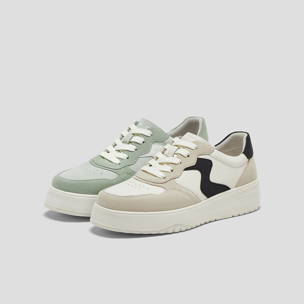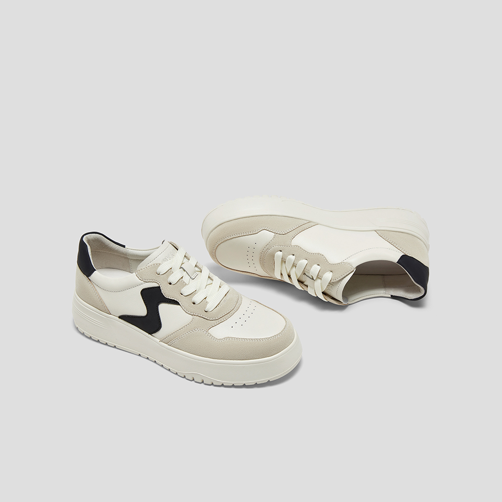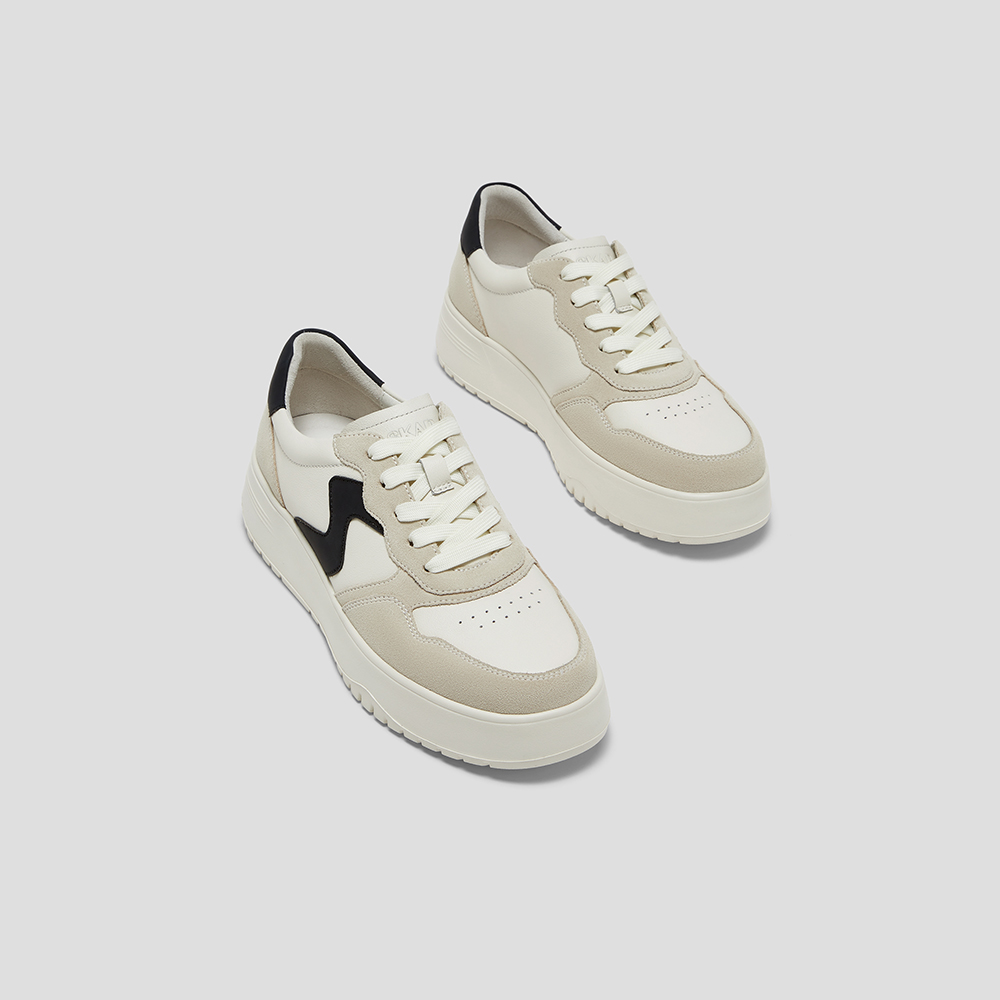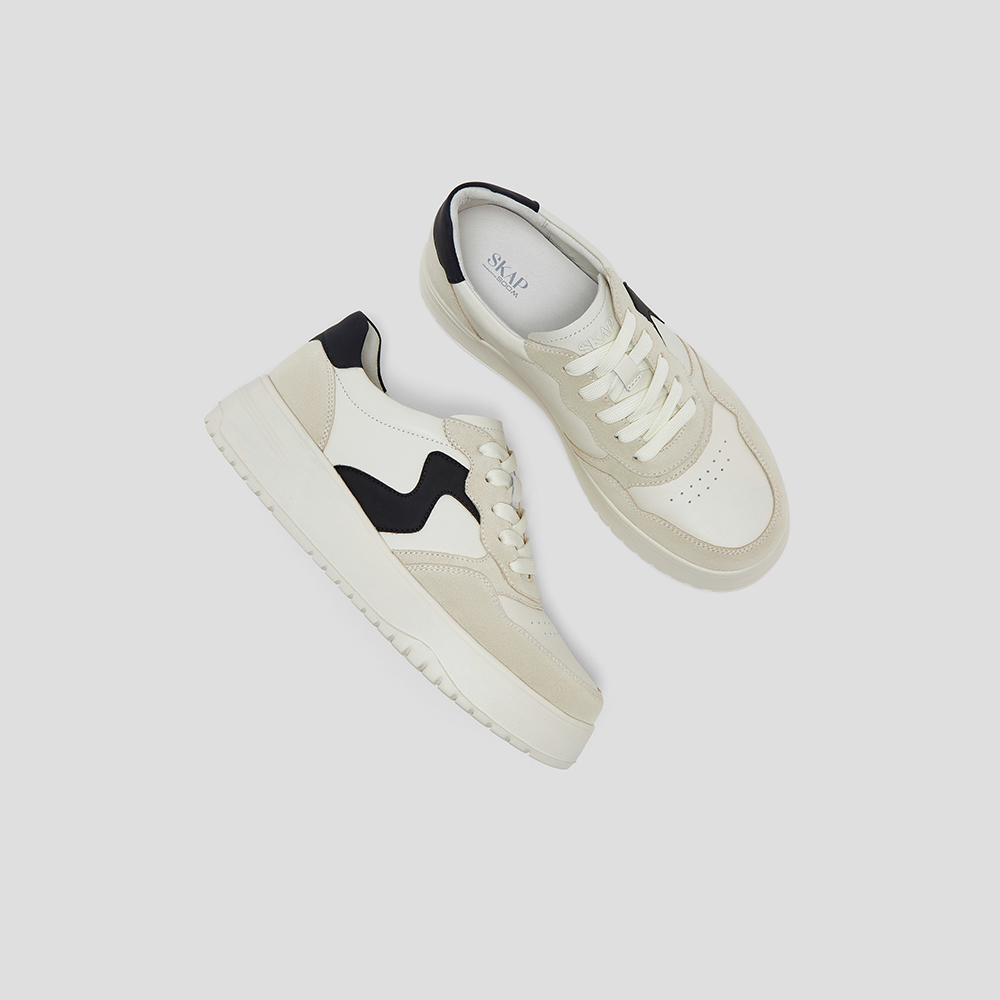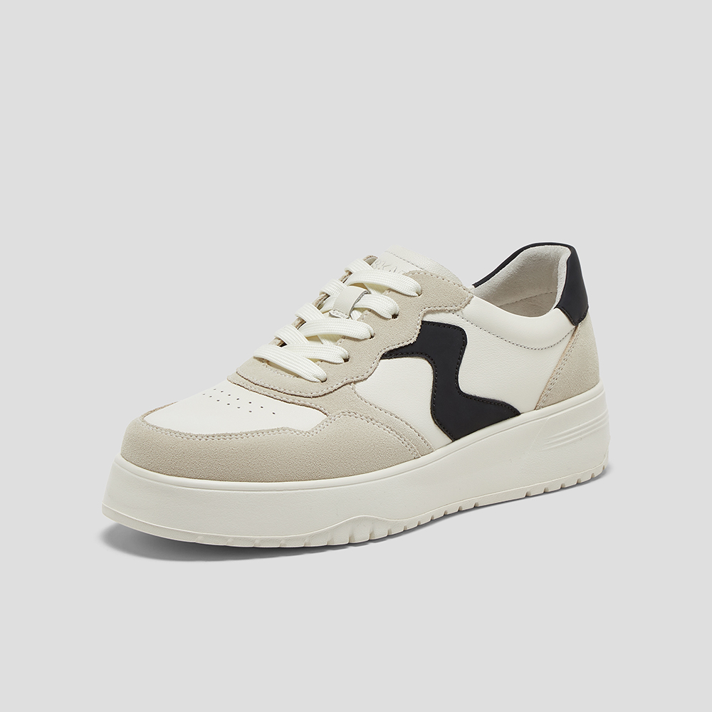 SKAP圣伽步女鞋2025春季新款板鞋时尚简约厚底系带舒适女休闲鞋
