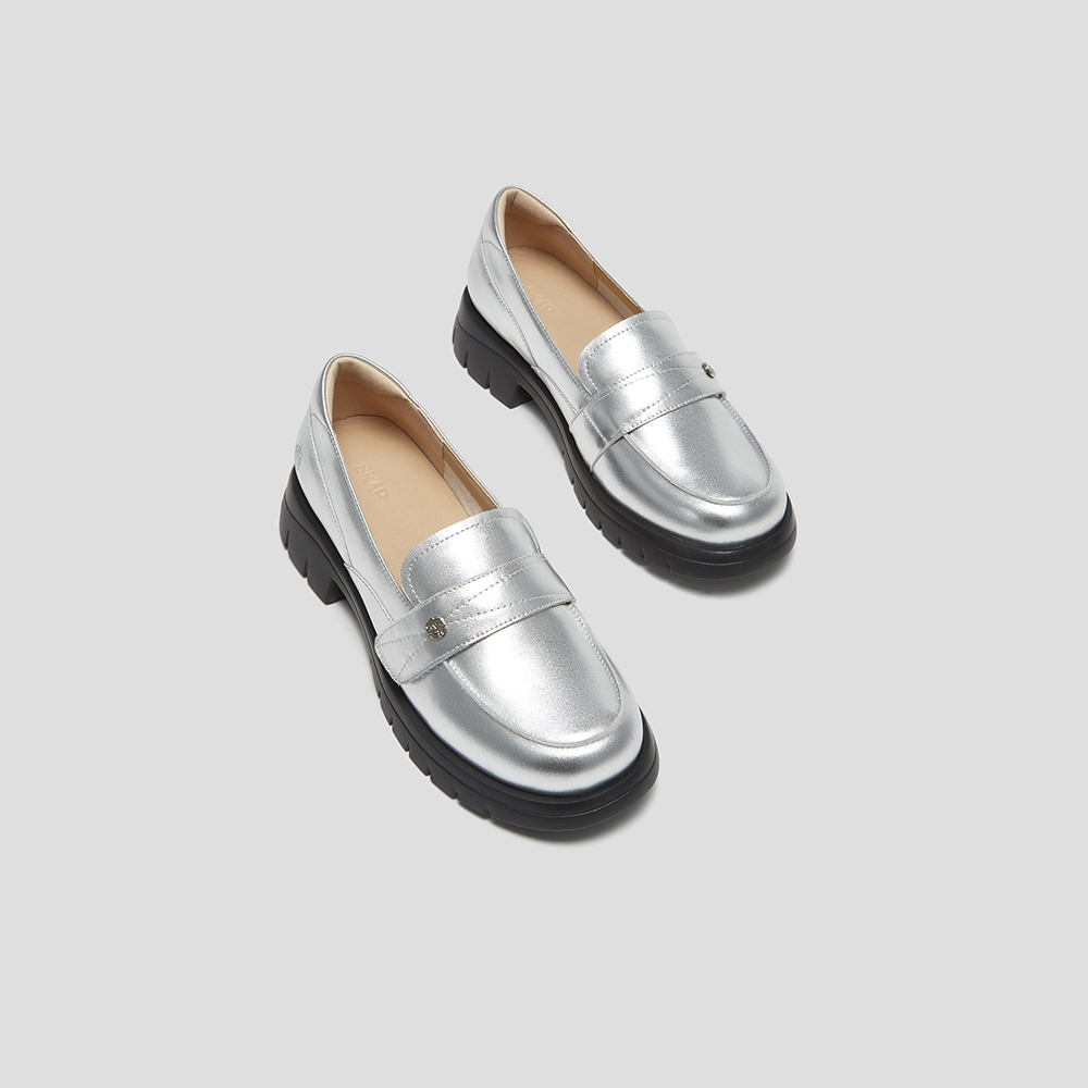 SKAP圣伽步女鞋2025春季新款气质通勤厚底套脚舒适女乐福鞋