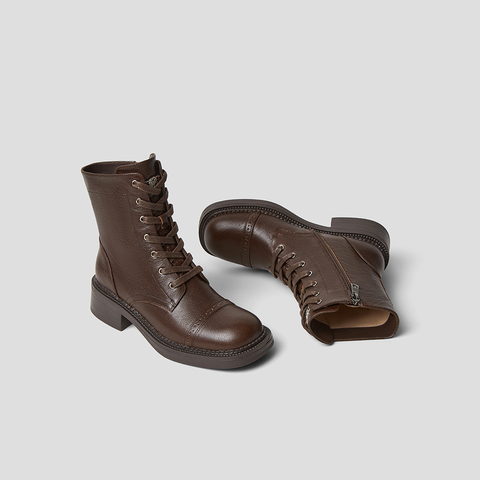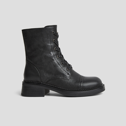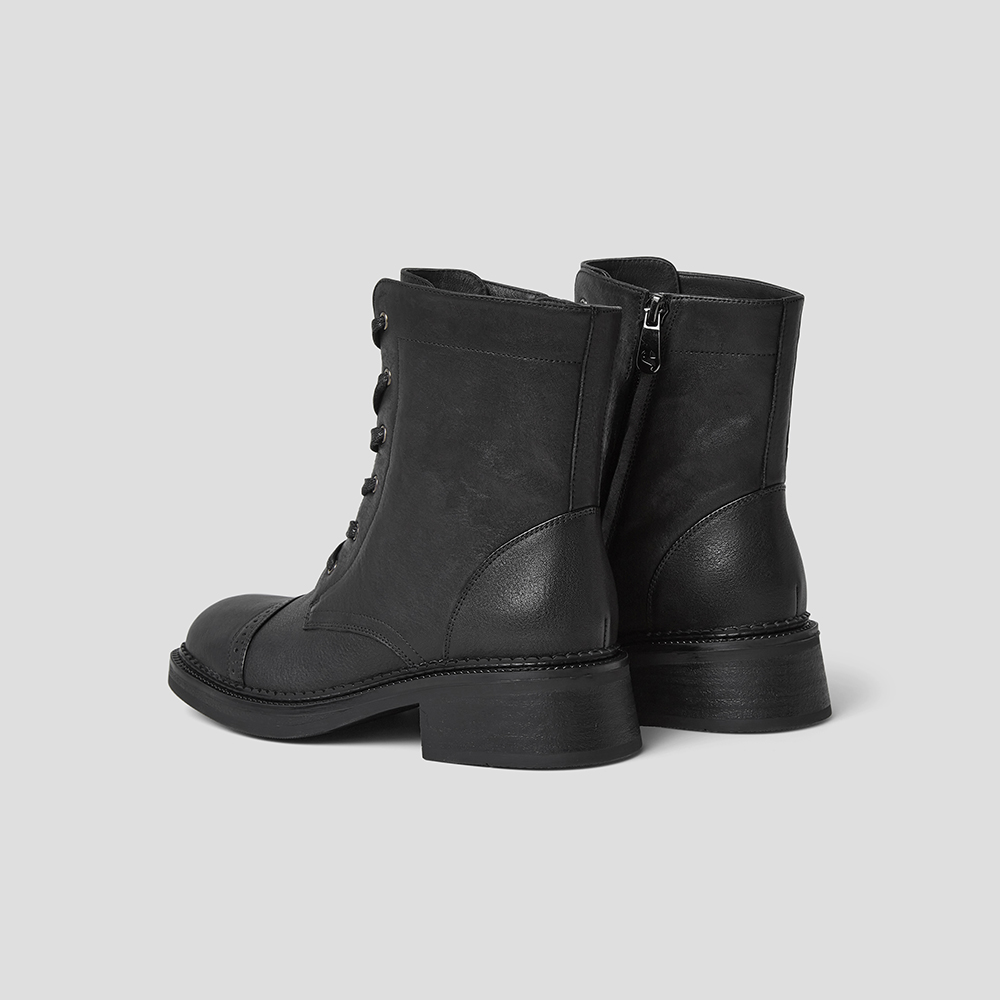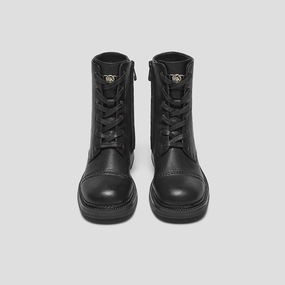SKAP圣伽步女鞋2024冬季新款简约复古拉链休闲皮鞋女款马丁靴