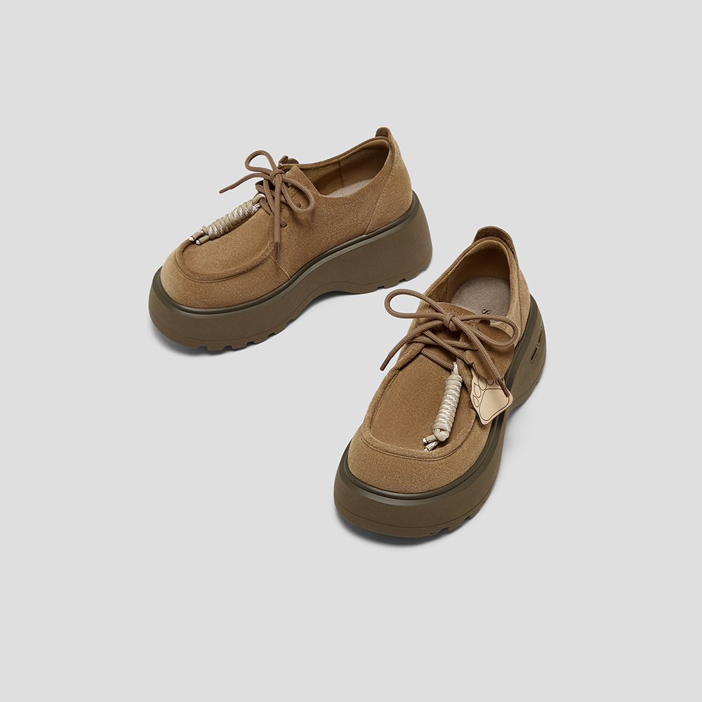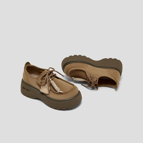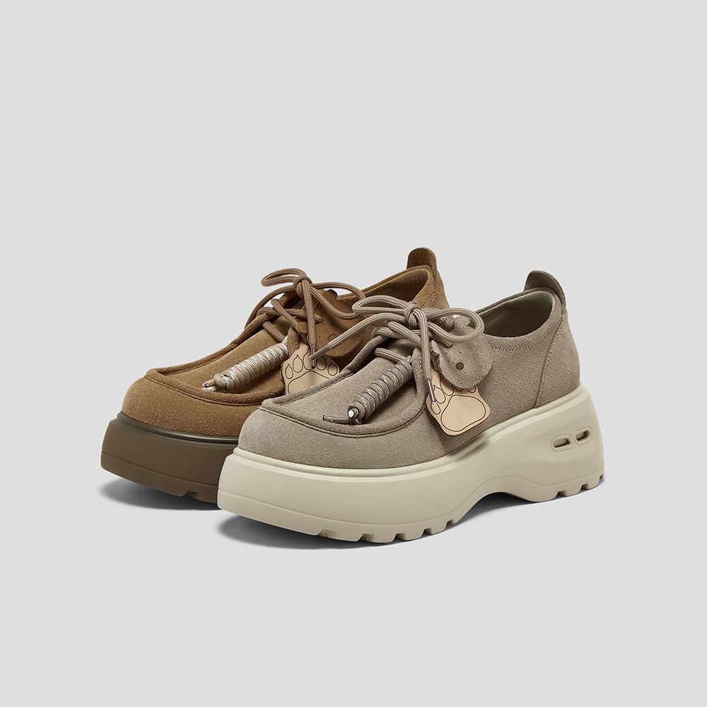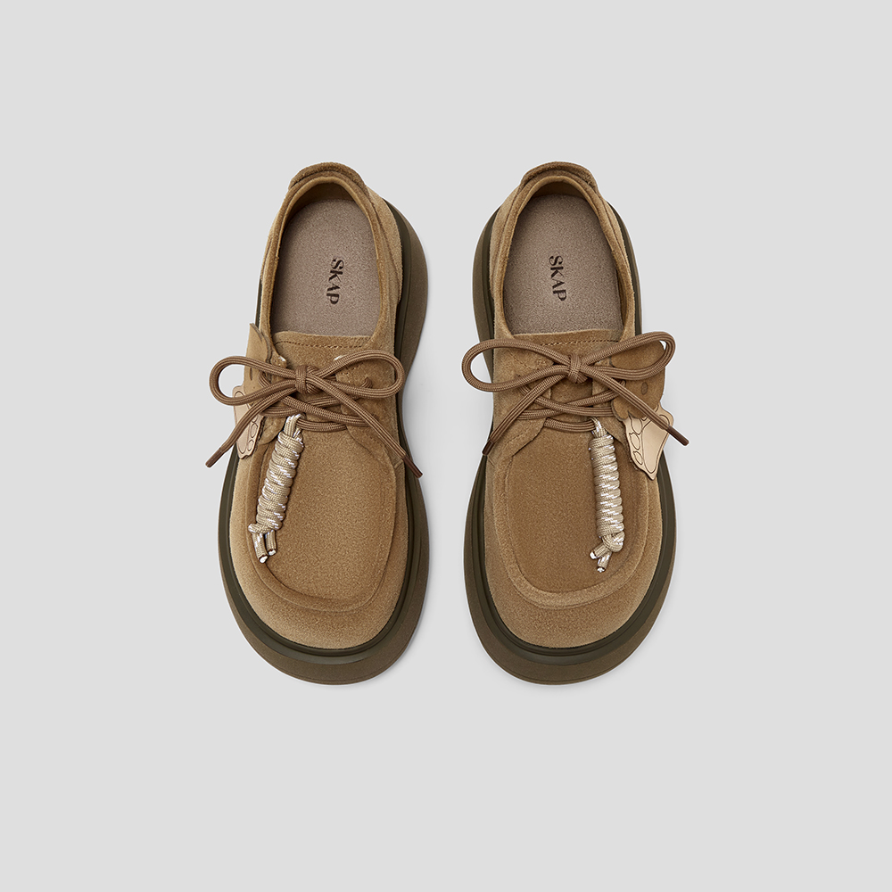 SKAP圣伽步女鞋2025秋季新款袋鼠厚底系带百搭舒适时尚女款休闲鞋