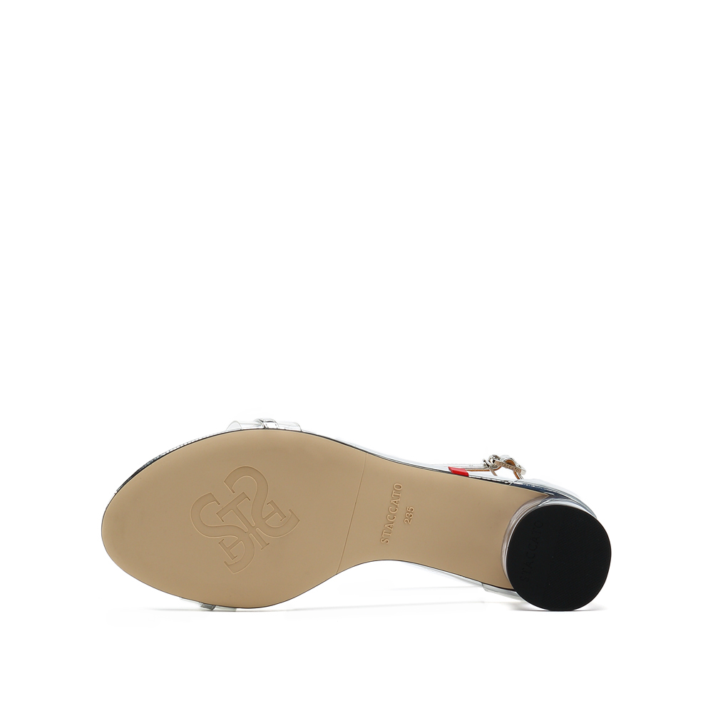 思加图夏季新款时尚粗中跟漆皮一字带优雅女纯凉鞋9O814BL9
