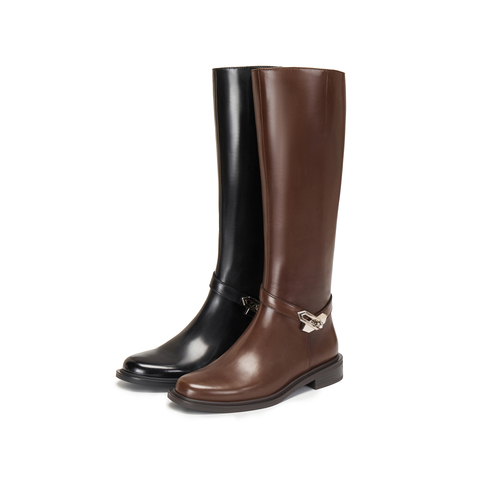 思加图2025冬季新款骑士乐章长靴高筒靴骑士靴粗跟女皮靴EAJ48DG5