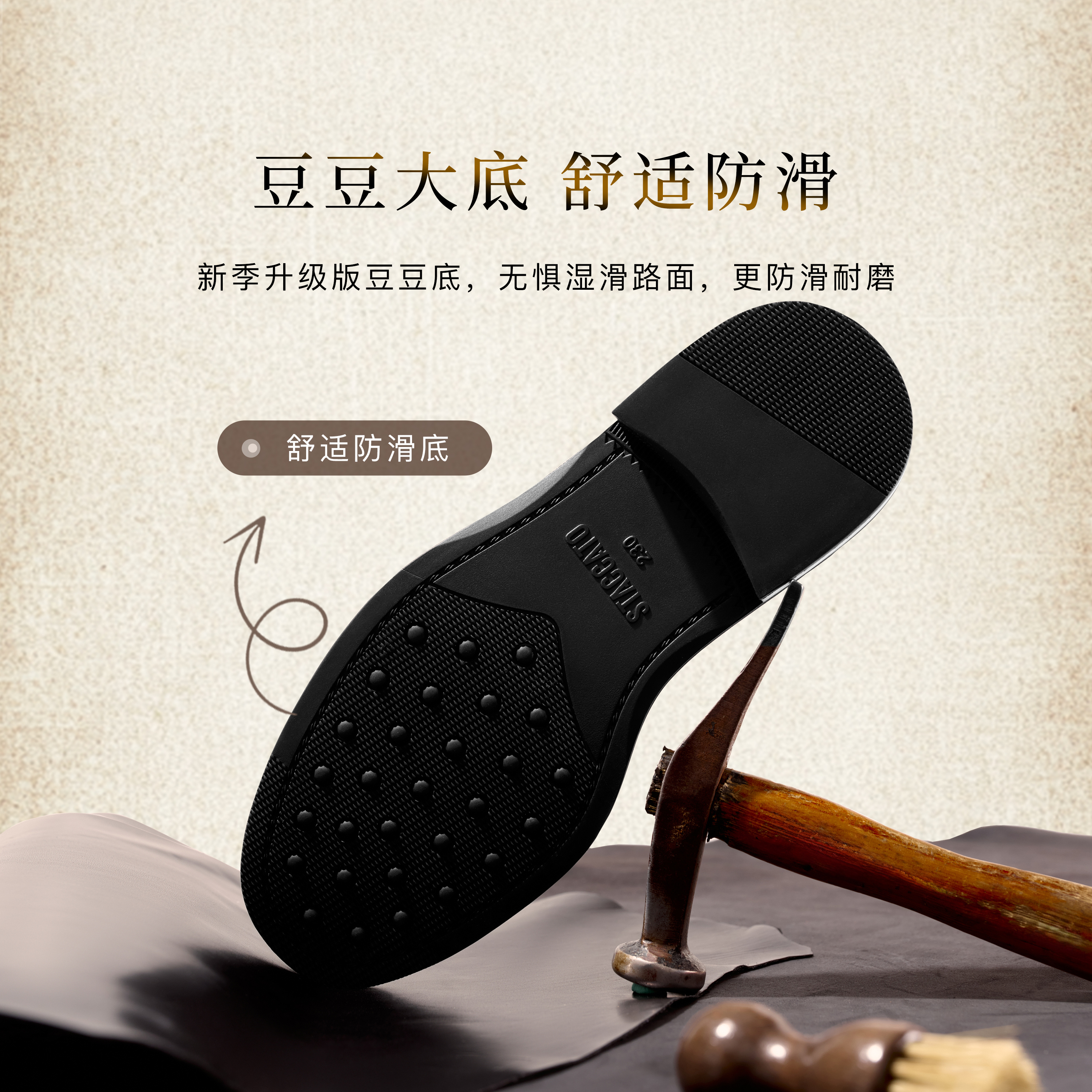 • 制鞋工艺:胶贴皮鞋