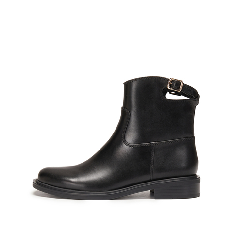 思加图2025冬季新款夜蝴蝶短靴时装靴粗跟黑色靴子女皮靴EAJ49DD5