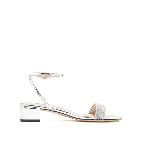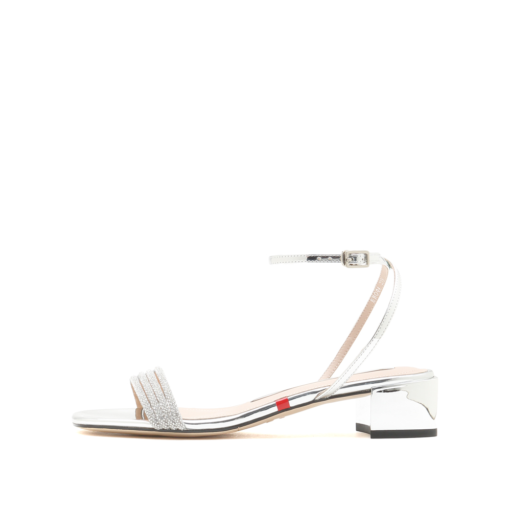 钻饰粗跟凉鞋