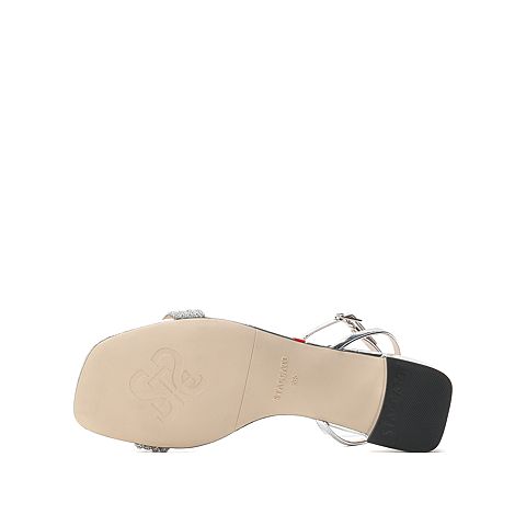 思加图2021夏季新款仙女鞋ins潮一字带凉鞋透明方跟凉鞋EBO04BL1